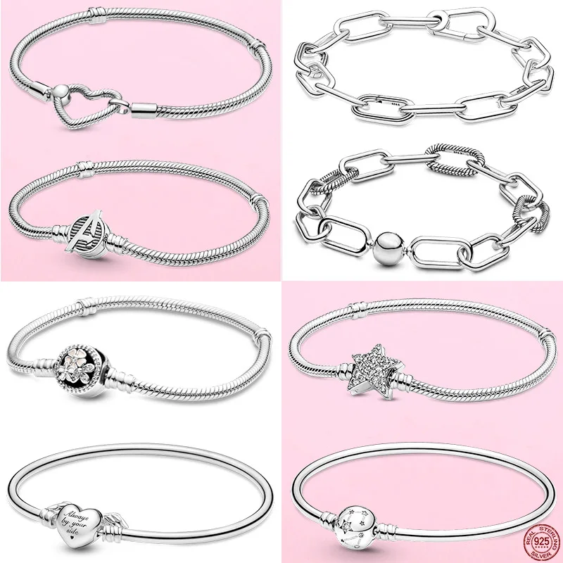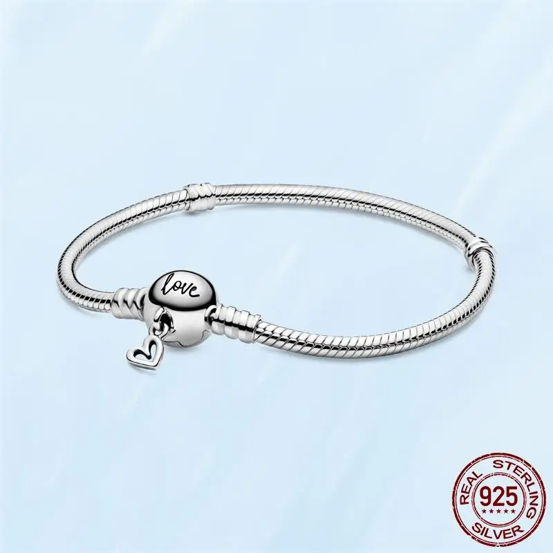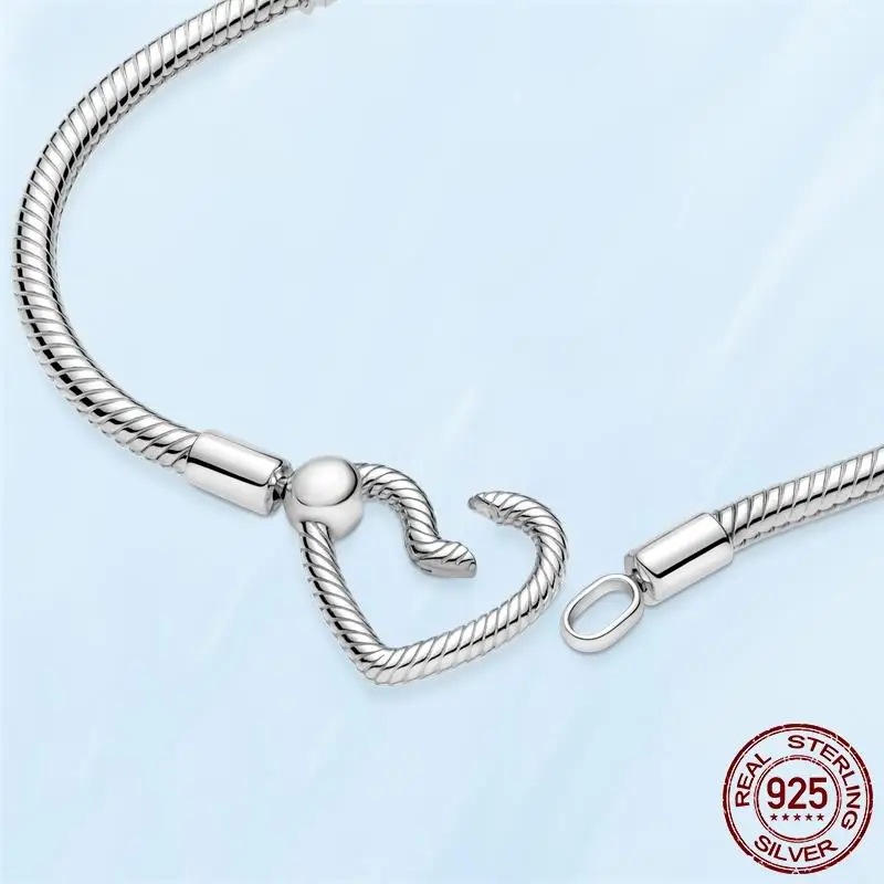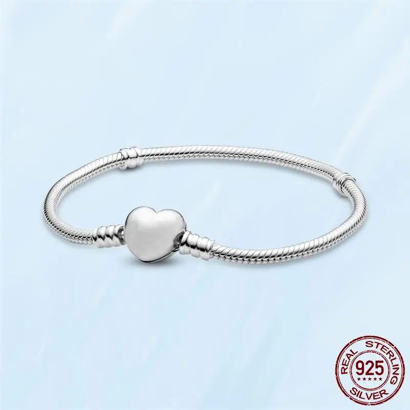 Женский браслет из серебра 925 пробы, с застежкой в виде сердца