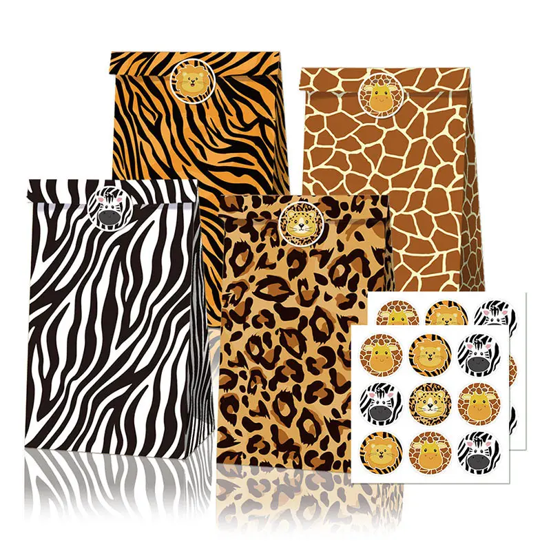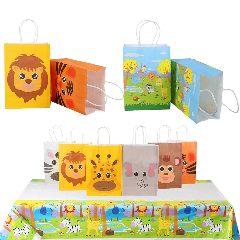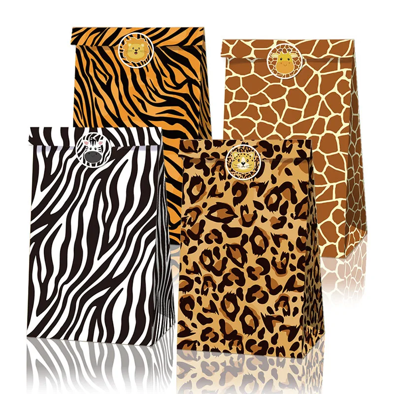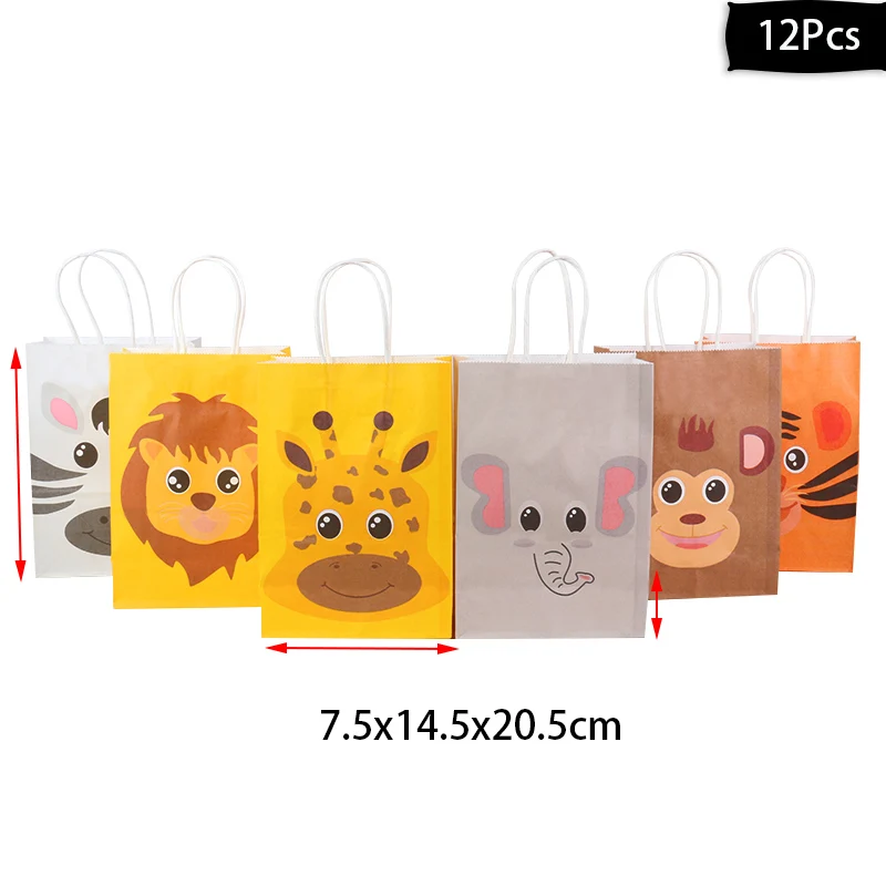 12 шт., Сафари в джунглях, подарочные пакеты с принтом животных, вечерние пакеты из крафт-бумаги для диких детей, товары для дня рождения