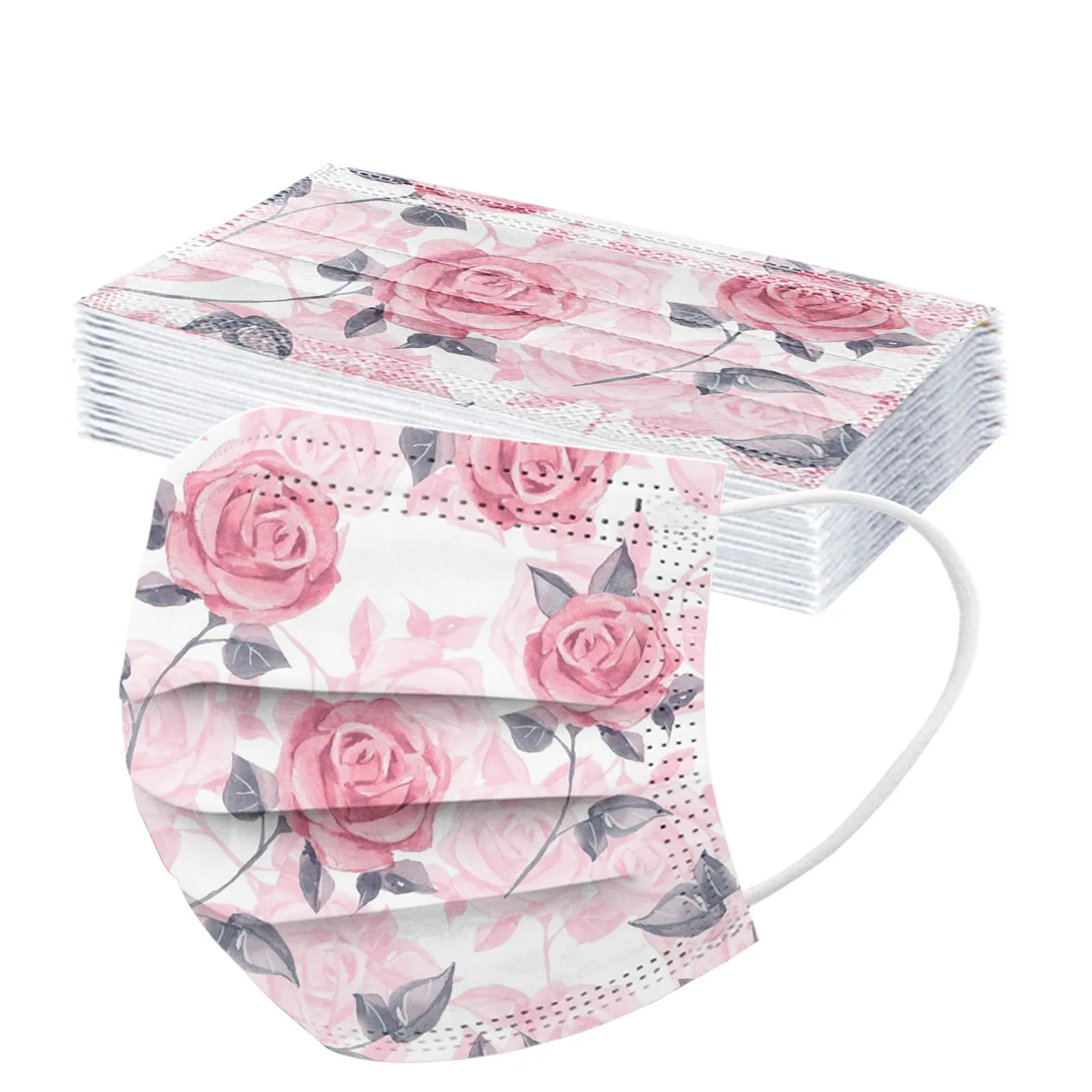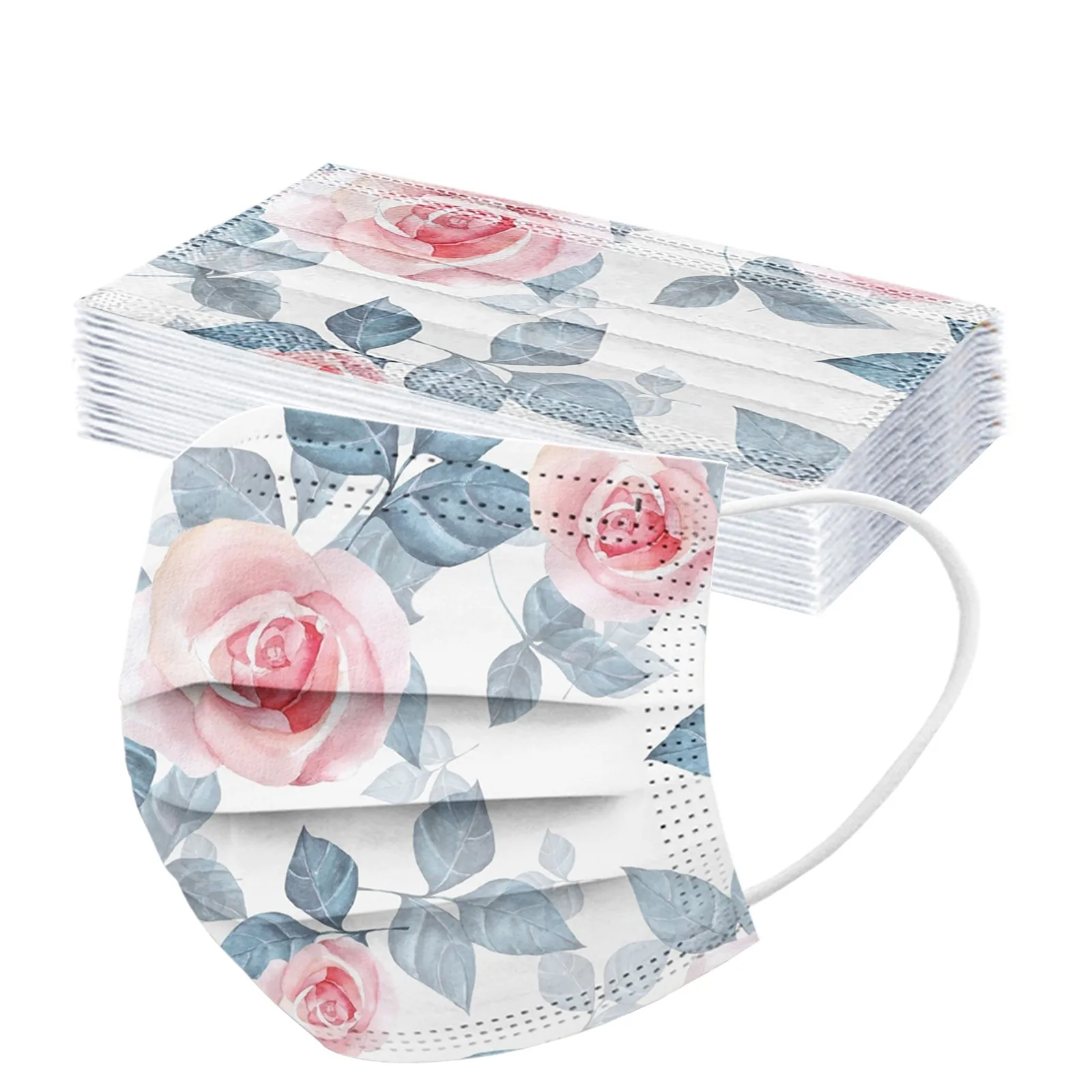 10 шт. одноразовая Рождественская маска для взрослых с цветочным принтом, 3 слоя, маска для лица с сережками