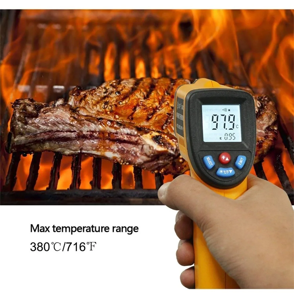 Инфракрасный бесконтактный термометр с ЖК-дисплеем, 50-380 градусов