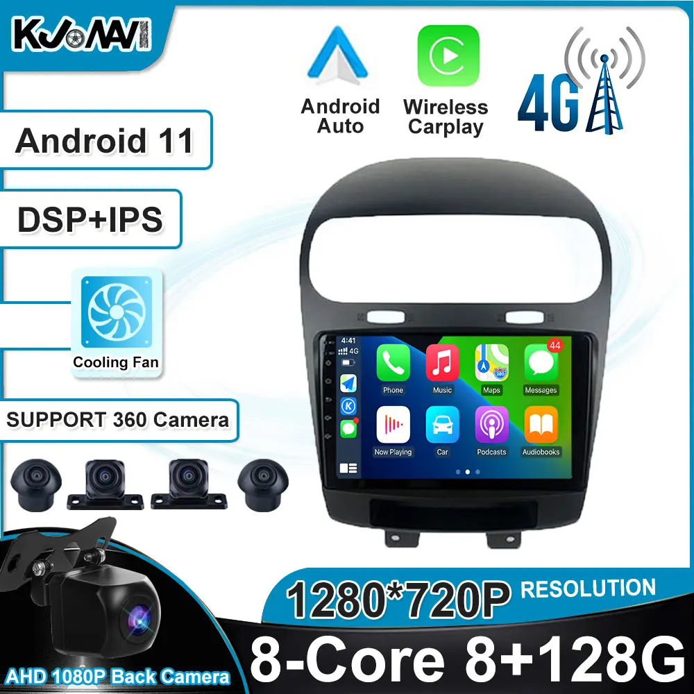 Автомобильный радиоприемник DSP IPS Android 11, мультимедийный стерео проигрыватель с Wi-Fi, GPS-навигацией, без DVD для Jeep Dodge Journey Fiat Freemont 2012-2020
