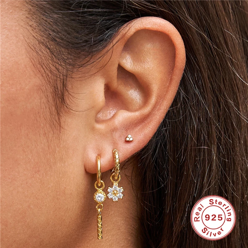 Женские серьги-гвоздики BOAKO, 3 шт./компл., с розовым камнем, из стерлингового серебра 925 пробы, Золотой пирсинг, ювелирные изделия для девочек, корейская бижутерия, Femme CZ