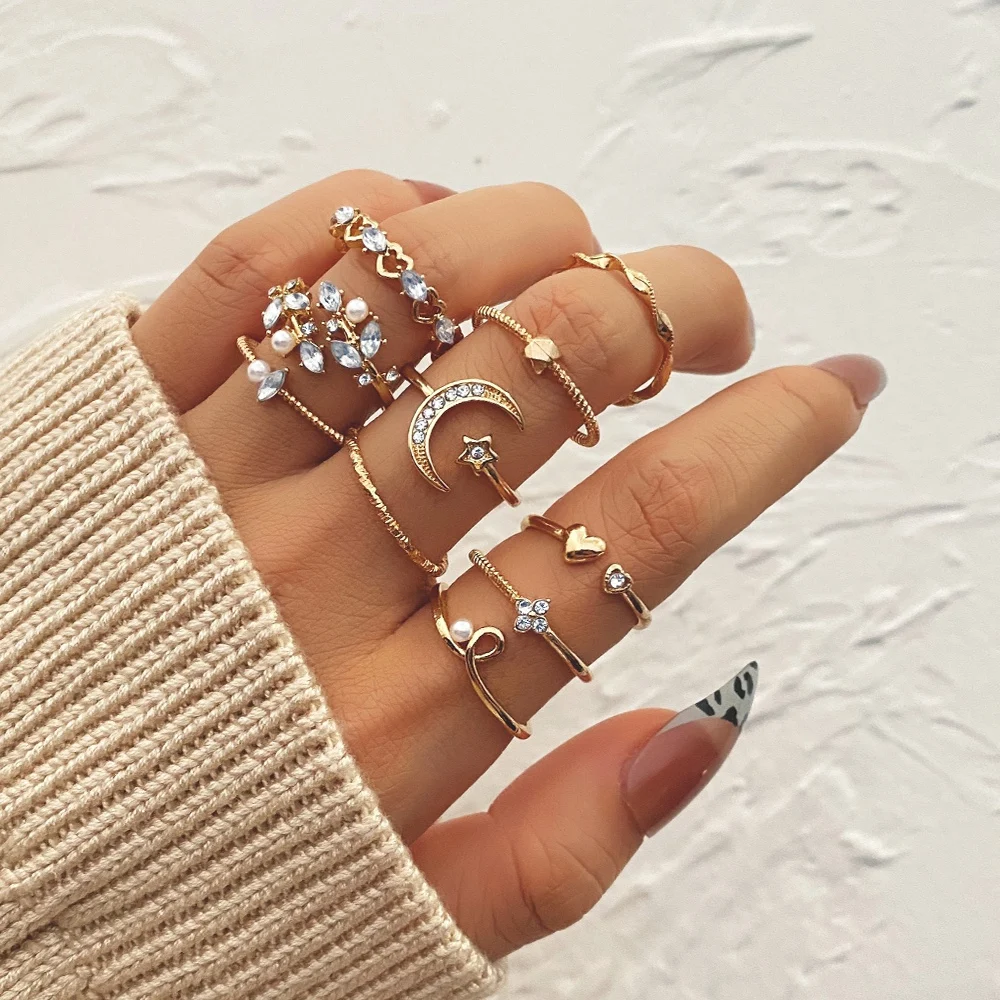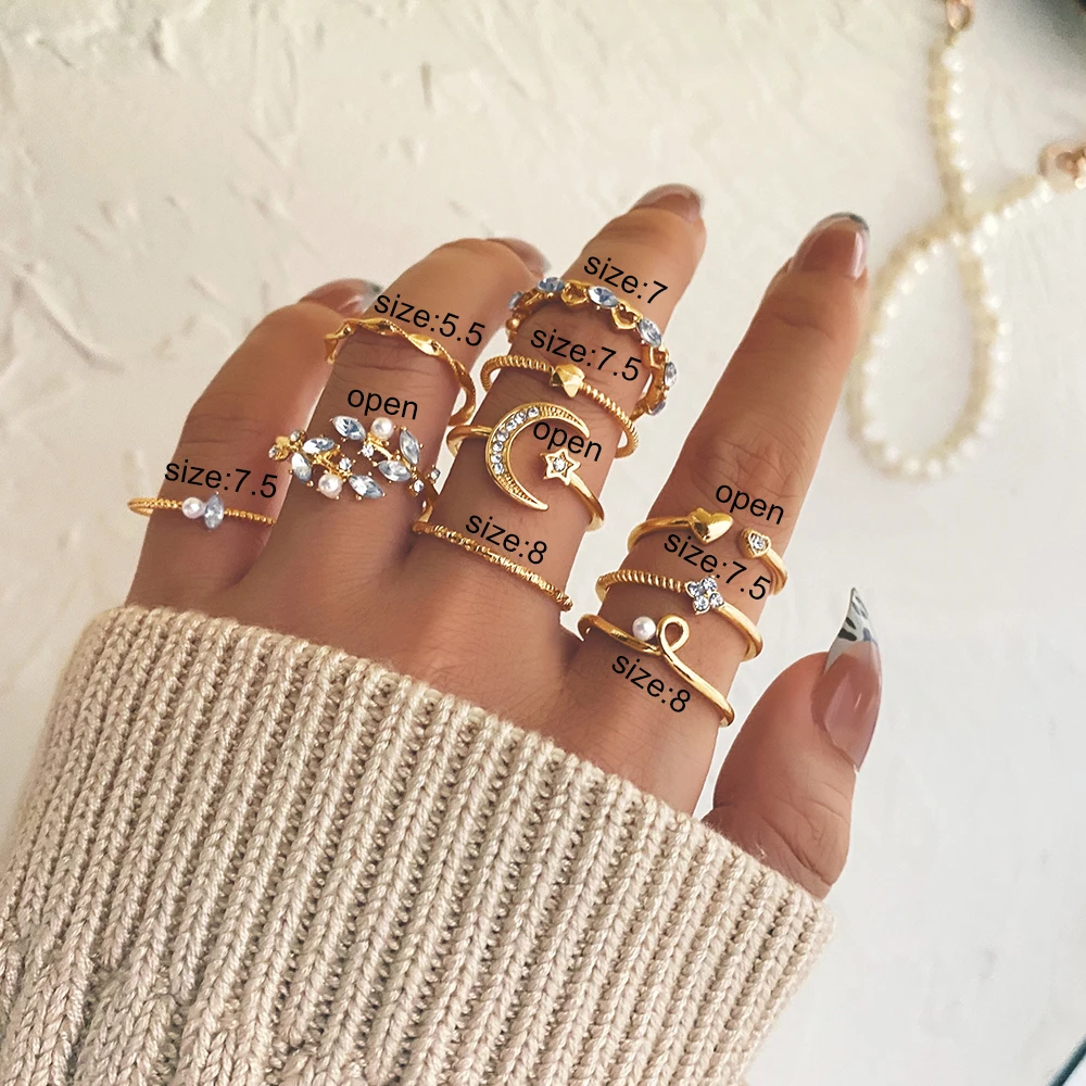 Набор золотых колец VKME в богемном стиле для женщин и девушек, Модные Простые Ювелирные украшения в стиле бохо с монетами, змеей, Луной для вечеринки, 10 шт.компл., 2021