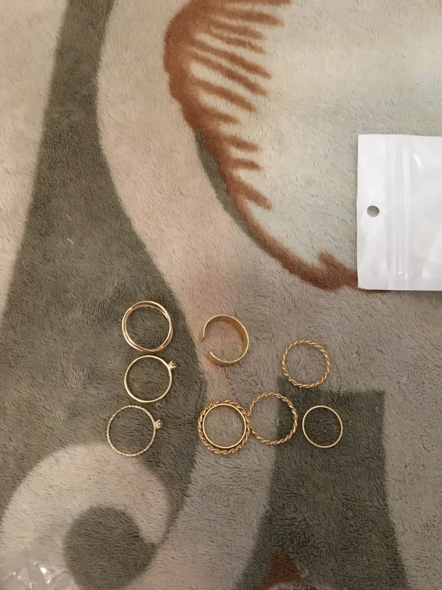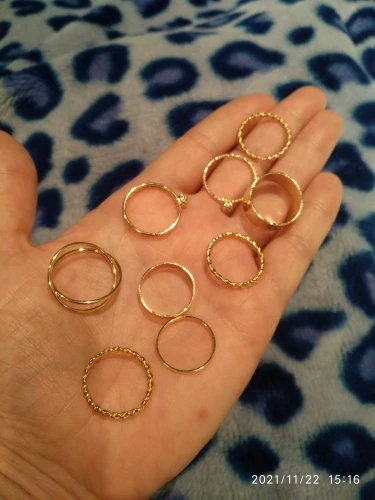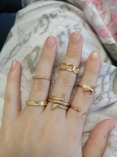 Никогда не заказывала кольца, так как переживала, что не подойдут по размеру. Но в данном товаре кольца на любой вкус: маленькие, большие, также есть кольцо, которое с разрывом- идеально тянется) очень рада покупке за такой прайс!