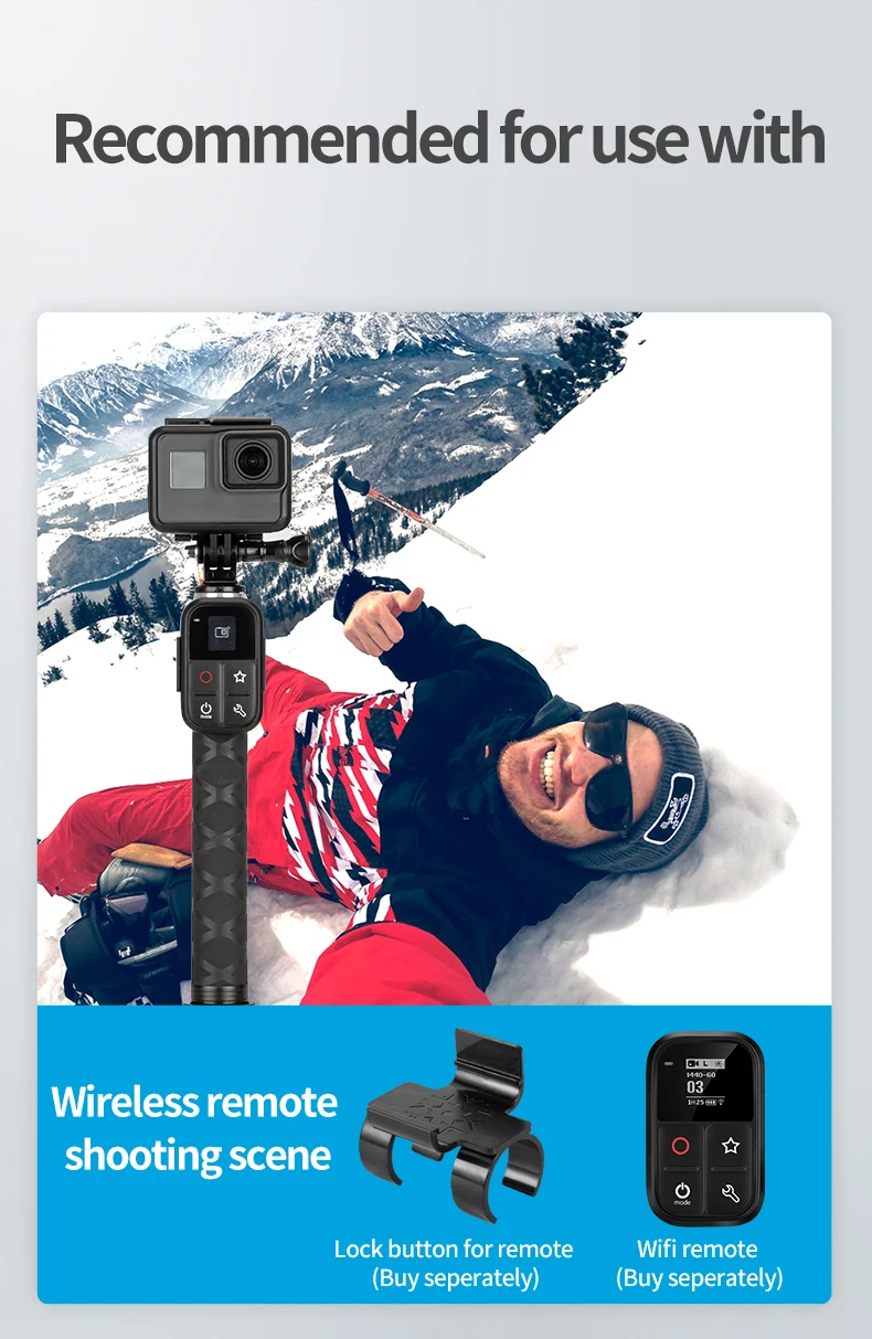 1. Ударопрочный, импорт из Японии, 120T углеродной ткани, поддержка 1,5 кг SLR камера, почти не деформируется, не являются безопасными и стабильными.2. Вес всего 113 г, он легче, чем для Gopro Hero 7, на одну третью легче, чем традиционная селфи-палка.3. Более прочный, антикоррозийный, может использоваться в море (обратите внимание на чистоту после использования).4. Может использоваться с штативом, замком дистанционного управления, зажимом на мобильный телефон.5. Подходит для GoPro,DJI Osmo Action,Osmo Action 2,Insta360,Xiaoyi, SJCAM и т. д.6. Штатив из алюминиевого сплава может складываться7. Термоусадочный метод селфи-палки: поверните верхний вал против часовой стрелки и поверните нижний вал по часовой стрелке.8. Обратите внимание: он имеет только 2 длины: 90 см (2,95 фута),22 см (0,72 фута)