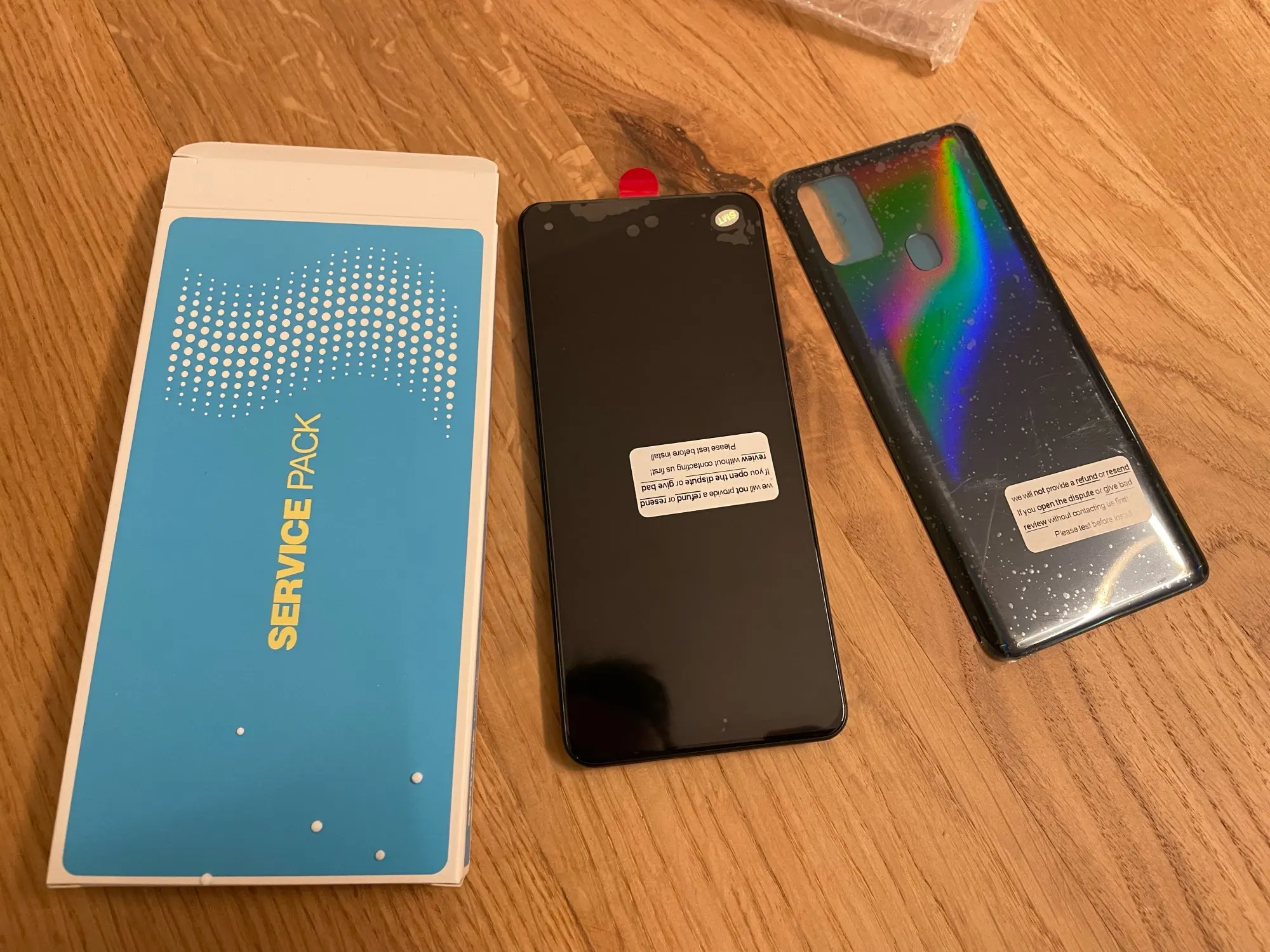 Товар прибыл без так называемого «подарка»-инструменты для ремонта и защитный экран. После того, как спор был одобрен, было выплачено возмещение в размере около 4 долл. США. Экран работает хорошо, но имейте в виду, что рамка поставляется без кнопок громкости питания, что означает, что вы должны купить один или перемещать его из старой рамки. Вы можете найти более дешевый экран с установленными кнопками регулировки громкости.