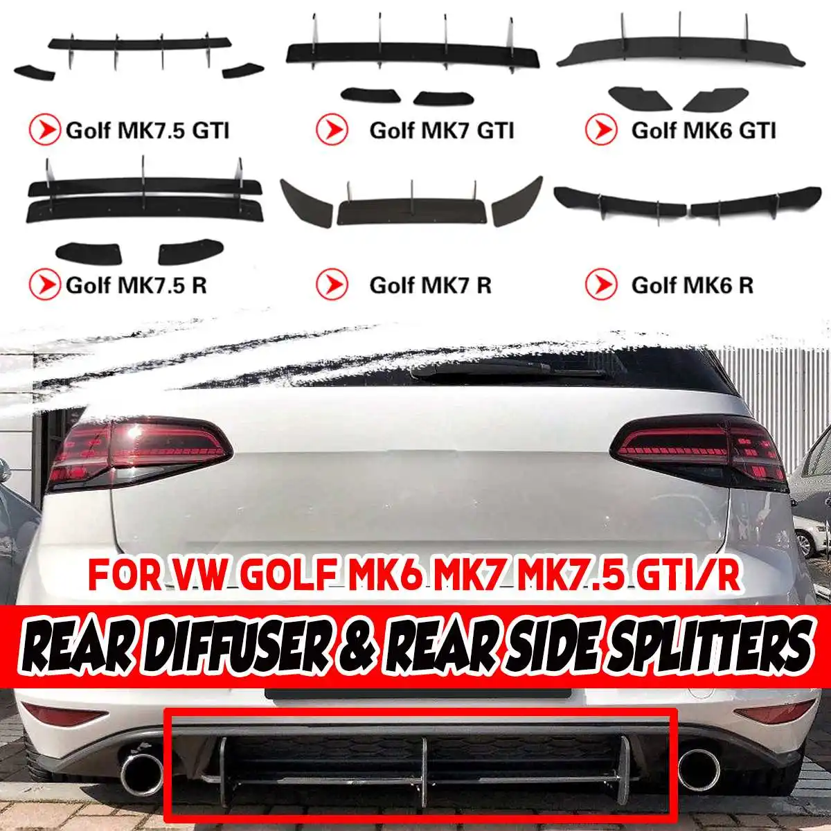 Для Volkswagen Golf MK6 MK7 MK7.5 GTI / R задний диффузор и задние боковые разветвители черный