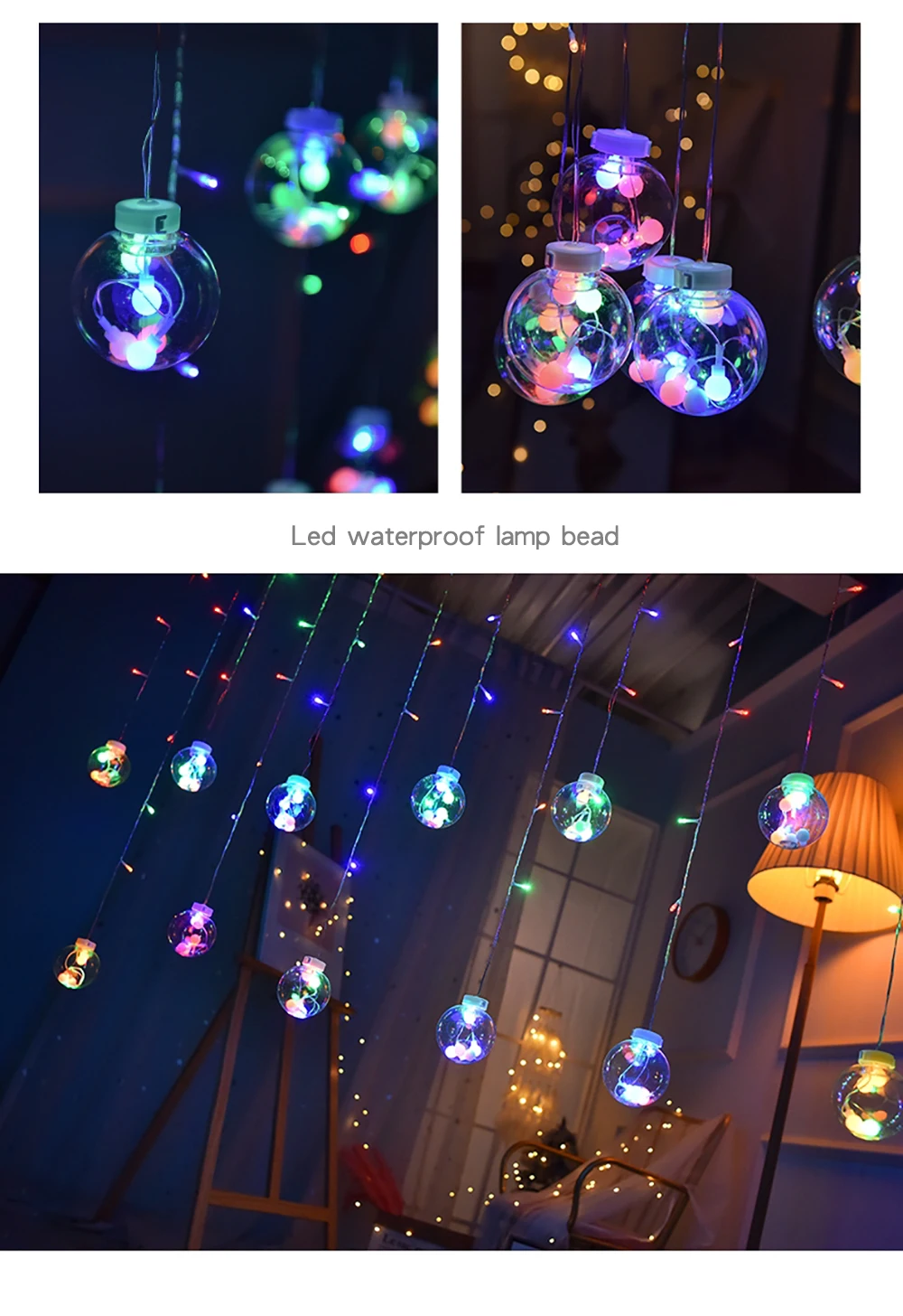 Рождественская светодиодная гирлянда-занавеска с шариками для желаний, Сказочная гирлянда, лампа для окна, спальни, свадьбы, Нового года, Рождества, праздничное украшение