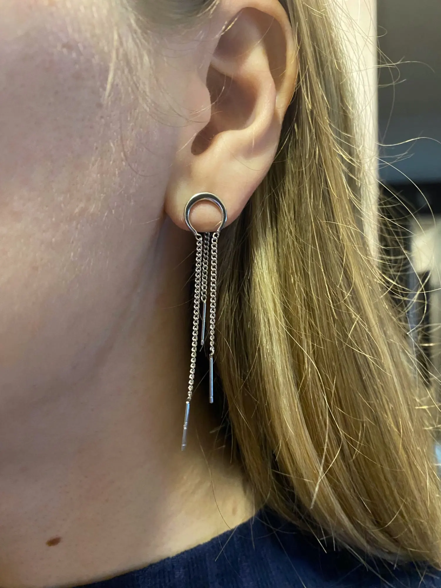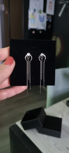 Earrings itself are gorgeous the design is fabulous, I love them ! I love how chains are moving all the time. Only one bad thing is that the sticks that go into the ear are very bending and it makes hard to fasten the clasp and I’m afraid to break them when I put them on.