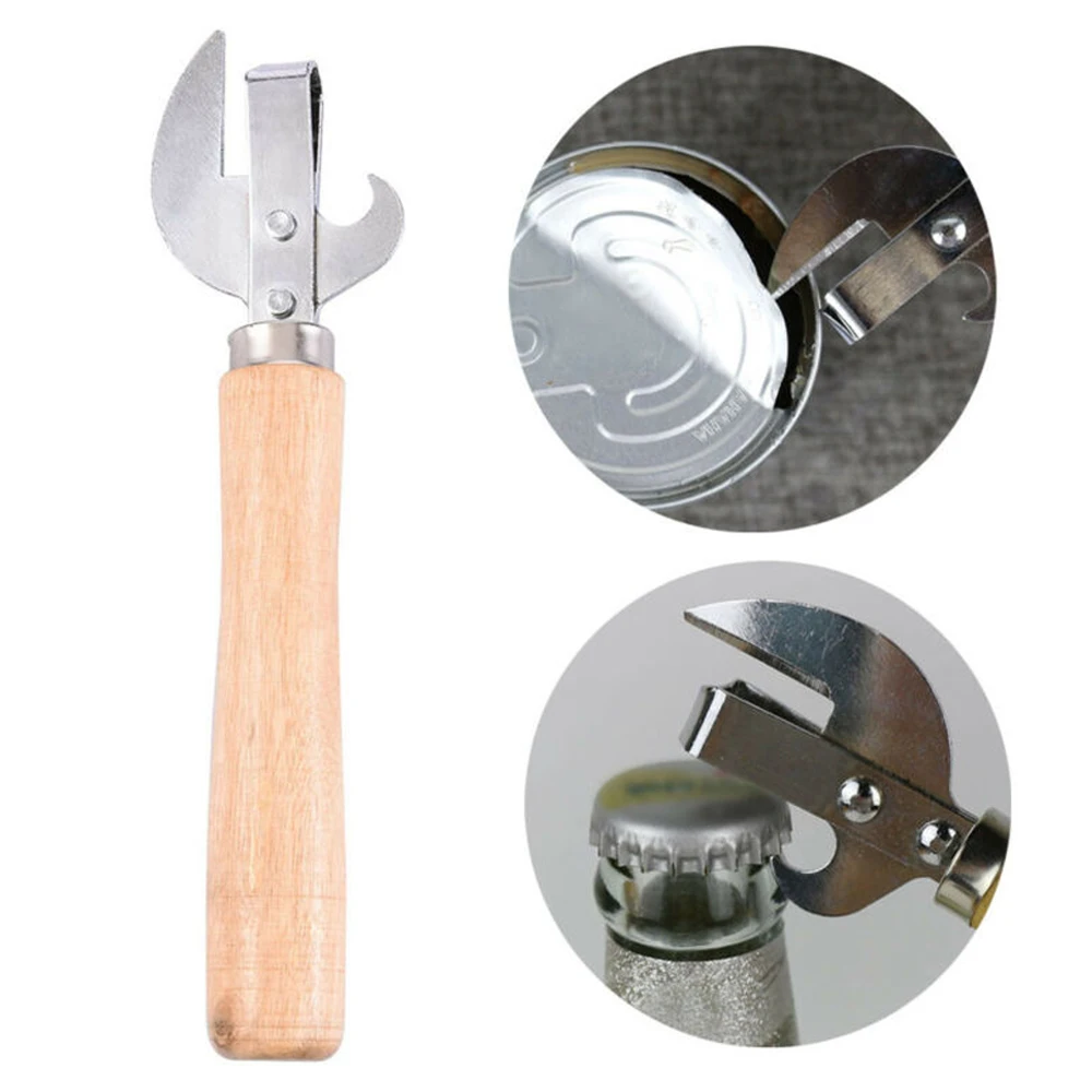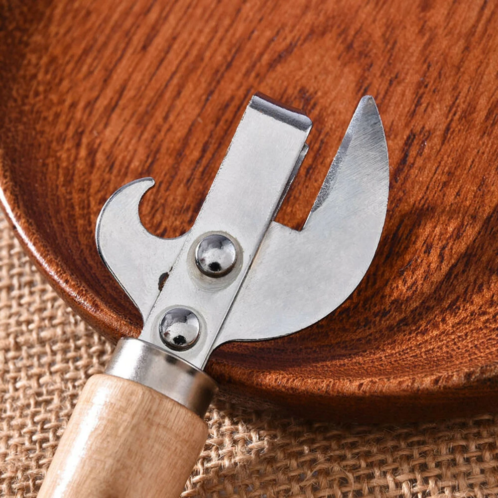 Штопор из нержавеющей стали с деревянной ручкой, Модный ручной консервный нож и консервный нож, кухонные принадлежности, открывалка для банок, пива