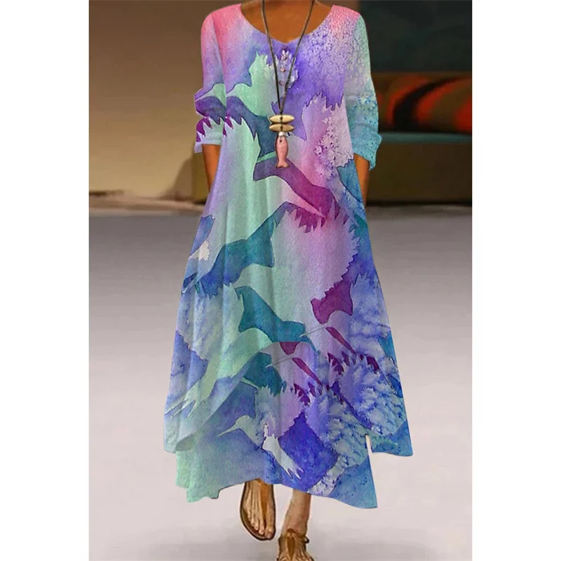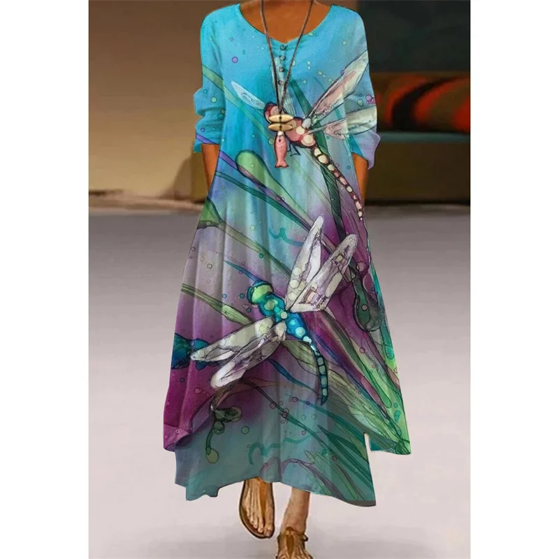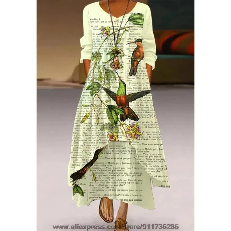 Женское винтажное платье с 3D-принтом, длинное повседневное платье ...