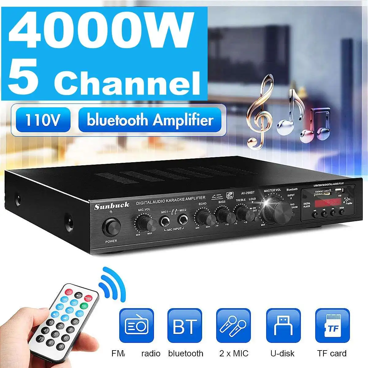 Sunbuck 4000 Вт Bluetooth Стерео AV мощность Surround 110 В 5CH автомобильная аудиосистема сабвуфер динамики светодиодный цифровой усилитель для караоке кинотеатра