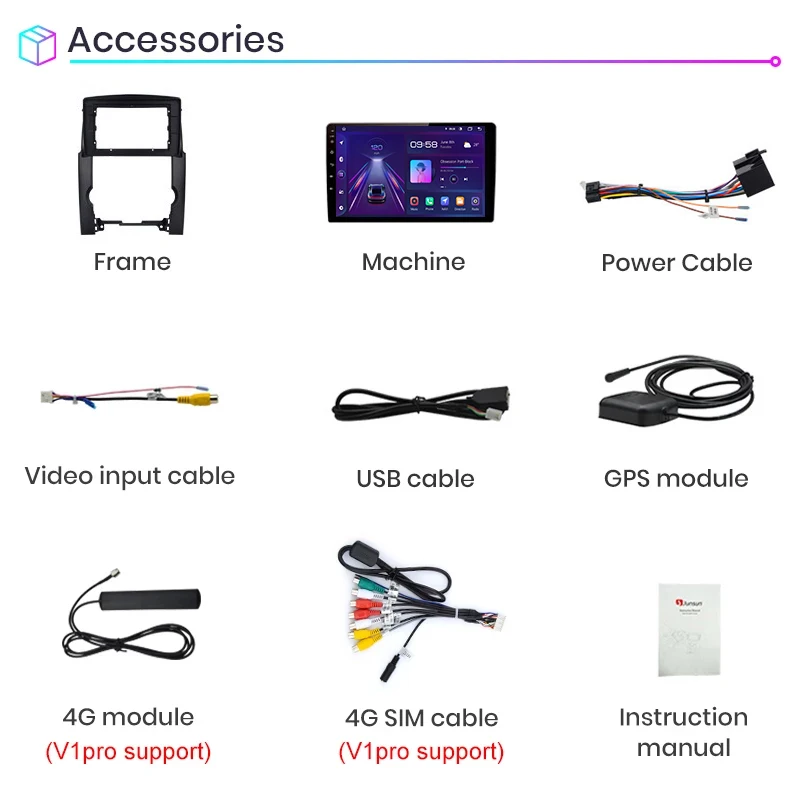 1. Штифт-штифт: Кабель питания Junsun radio' является штифтом для штифта, прост в установке;2. Встроенный Carplay/ Android авто: Просто используйте свой телефонный кабель, подключите его, стабильный и простой в использовании;PS:V1C не поддерживает;V1 (16 Гб) поддерживает только Android Auto, но нужно купить;V1 (32 ГБ) Поддержка проводной Carplay и Android Auto;V1Pro (32 ГБ/64 ГБ) поддерживает Android Auto и Wired CarPlay, а также Wireless CarPlay, необходимо приобрести код активации для активации, и после его использования, отсутствует автоматическая функция Android;V1Pro (128 ГБ/256 ГБ) поддерживает Android Auto и встроенный беспроводной CarPlay;3. Поддержка подголовника: только поддержка версии Junsun V1;