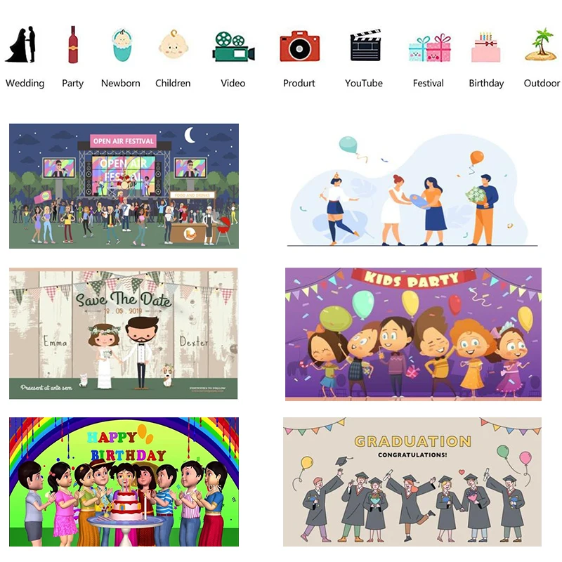 Пользовательские Мультяшные фоны для фотосъемки на день рождения с ...