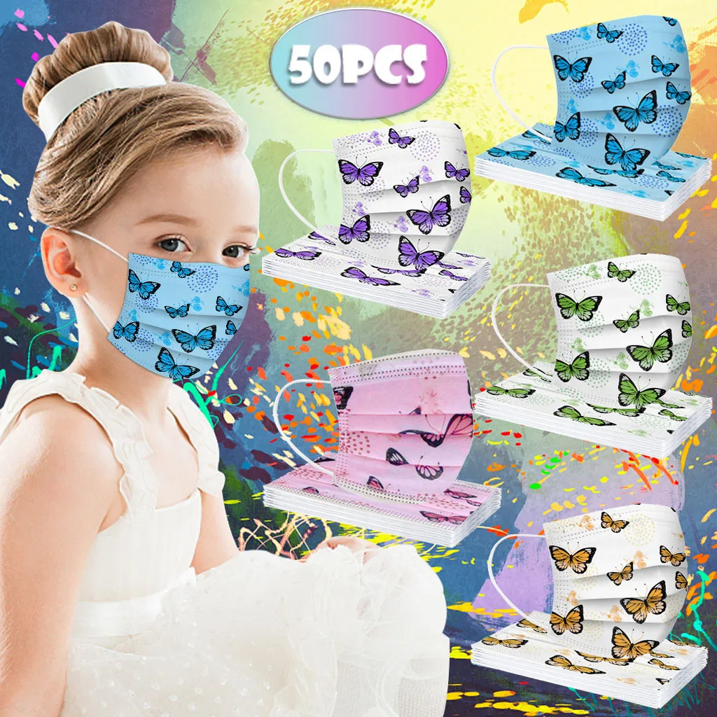 50 шт. детские одноразовые маски милые Мультяшные бабочки радужные ...