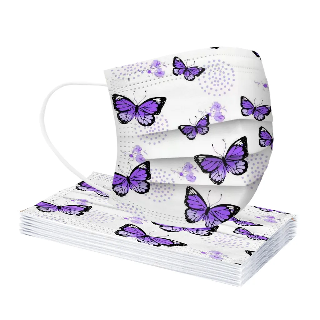 Маска одноразовая детская трехслойная с принтом бабочки, маска Нетканая с петлями для ушей, 50 шт.