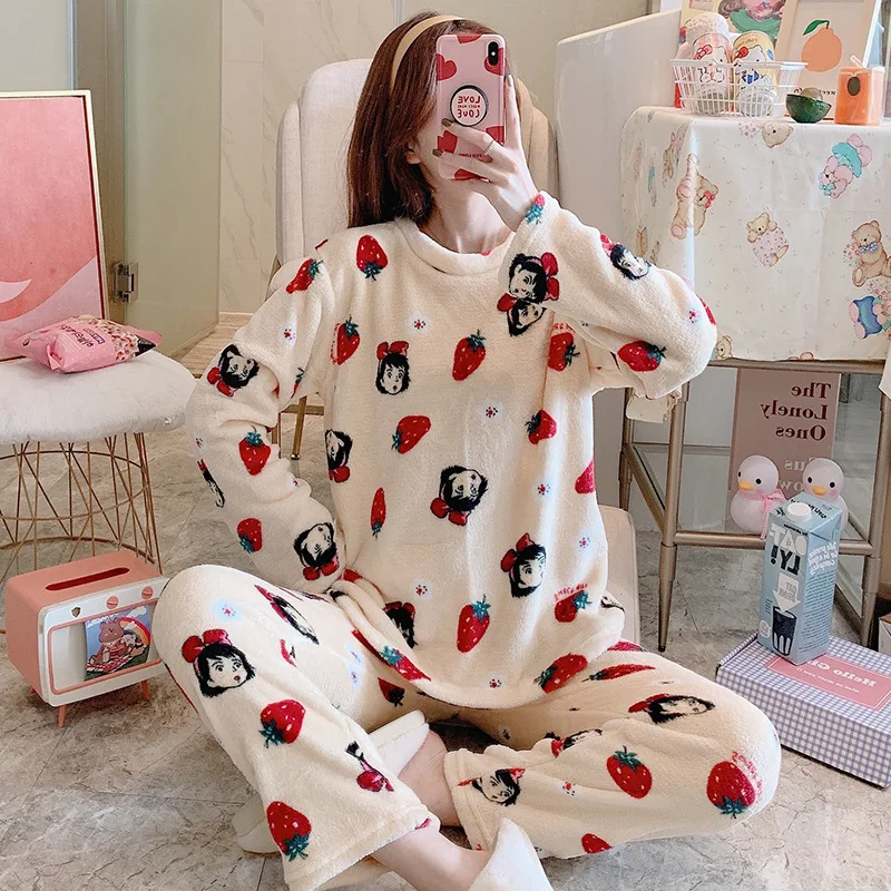 Женские пижамные комплекты, фланелевая одежда для сна с мультяшным ...