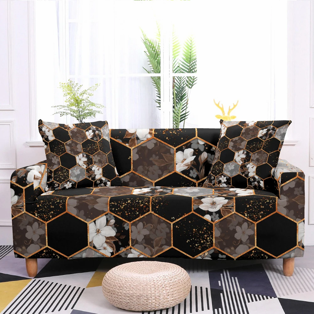 Эластичный чехол для дивана в гостиную, геометрический чехол с мрам...