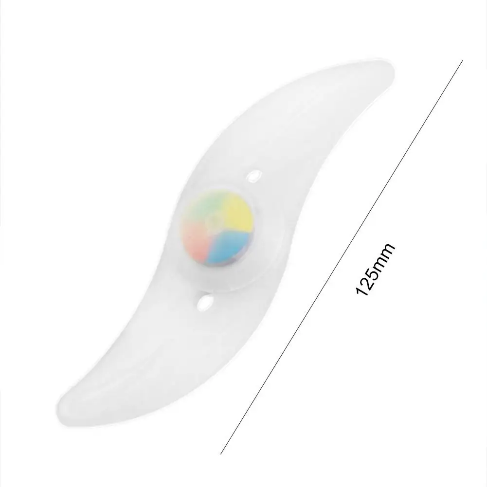 Светодиодная велосипедная лампа в форме ивыОсобенности:1. Нет необходимости модифицировать провода, он может быть непосредственно установлен на стальной проволоке колеса.2. Поддержка нескольких огней на одном колесе.3. Дизайн переключателя, с 3 режимами освещения (обычно включается, мигает, быстро мигает)4, обе стороны яркие, значительно улучшают безопасность дорожного движения.5. Хорошая водонепроницаемость.Технические характеристики:Материал: АБС-пластикРазмер: 125x38x10 мм/4,92x1,50x0,39"Вес: 20 гФорма: запасами ивовых деревьевЦвет света: красный/синий/зеленый/многоцветныйБатарея: 1 кнопочный аккумулятор CR2032 (3 В) (входит в комплект)Применение: для фиксированной передачи/горных велосипедов/электрических велосипедов/дорожных велосипедов/складных велосипедов/мотоциклов