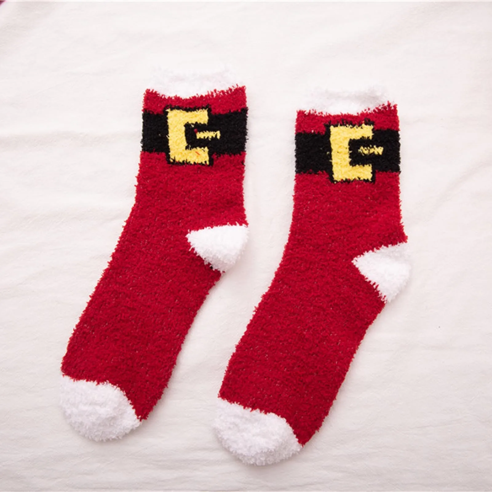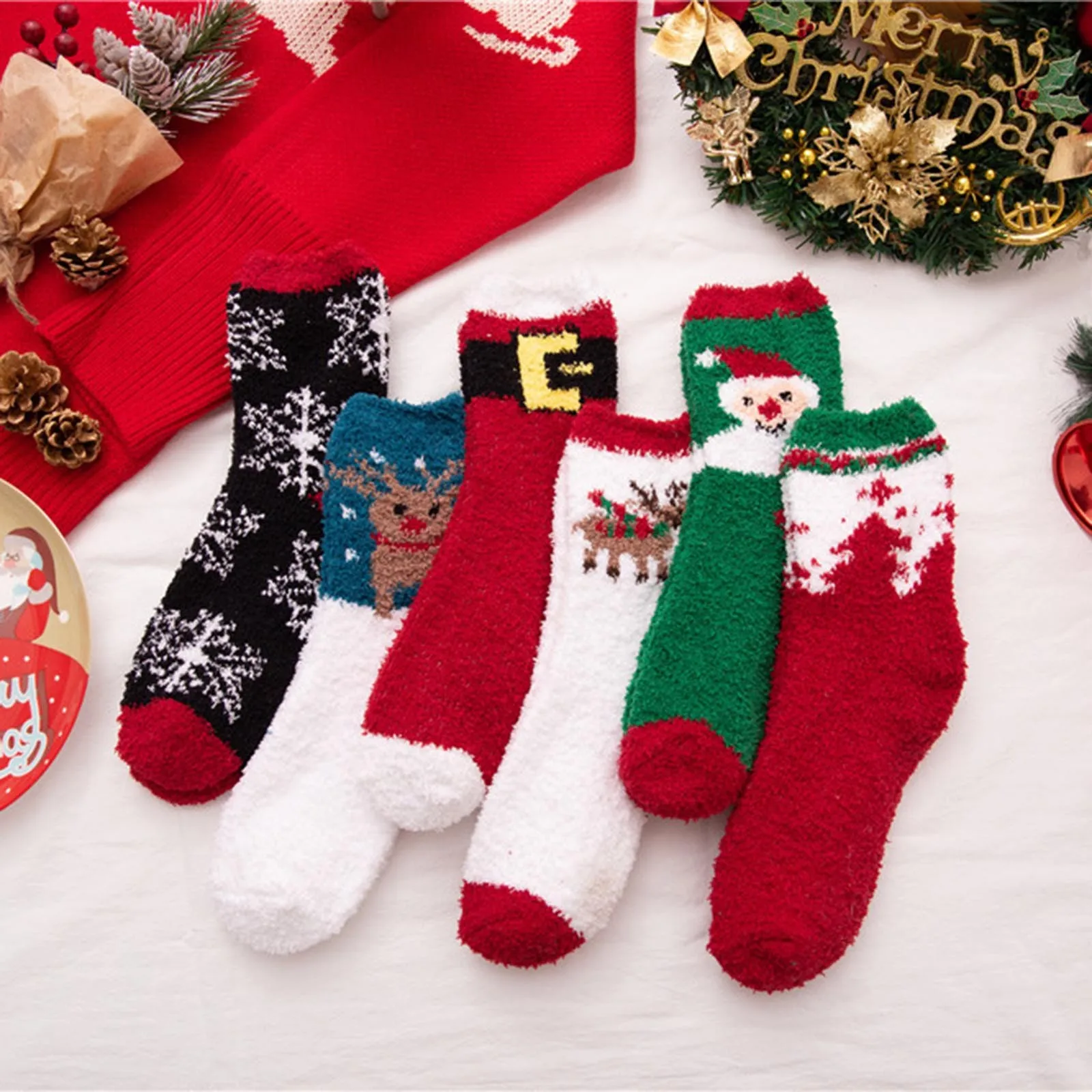 Женские носки, хлопковые рождественские носки, зимние новогодние носки с принтом Санта Клауса, милые теплые удобные домашние носки из кораллового флиса, подарки