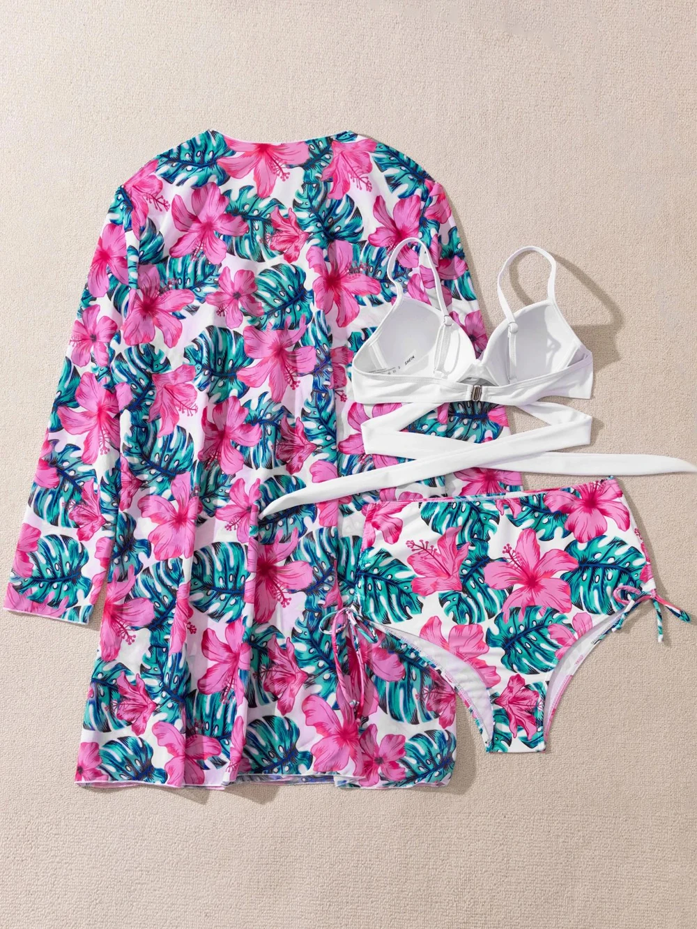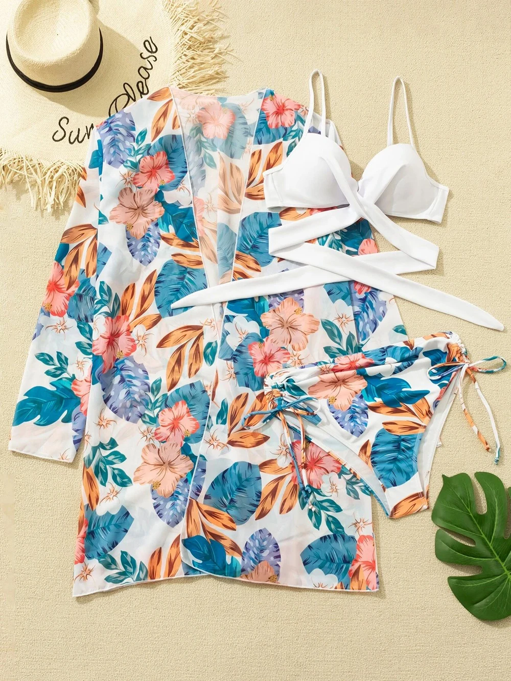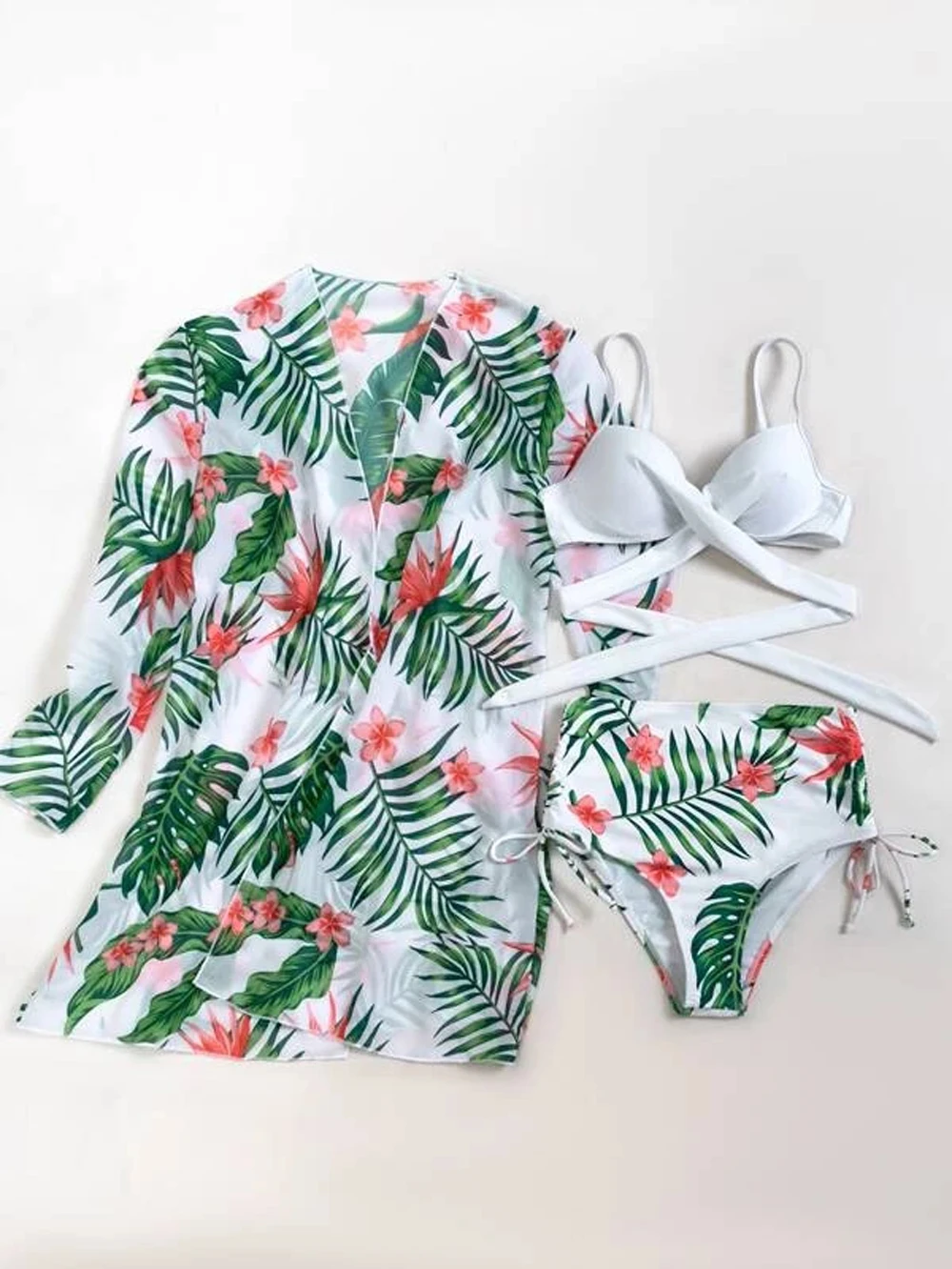 Новые женские сексуальные комплекты бикини купальник с высокой талией купальники для женщин купальные костюмы Пляжная одежда Купание с пляжной накидкой