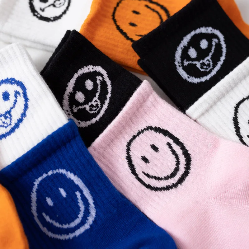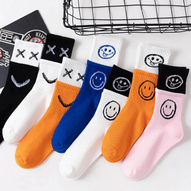 высокие носки женские харадзюку корейский стиль японский стиль длинные хлопок Носки женские хлопковые в стиле хип-хоп, смешные с рисунком смайликов, чёрные в стиле преппи, в стиле Харадзюку