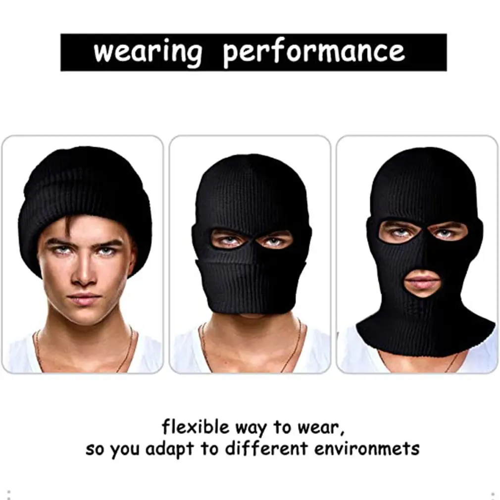 Защитная Лыжная маска на все лицо, шапка, Балаклава с 3 отверстиями, армейские тактические ветрозащитные вязаные шапки, шапочка, зимние теплые шапки унисекс