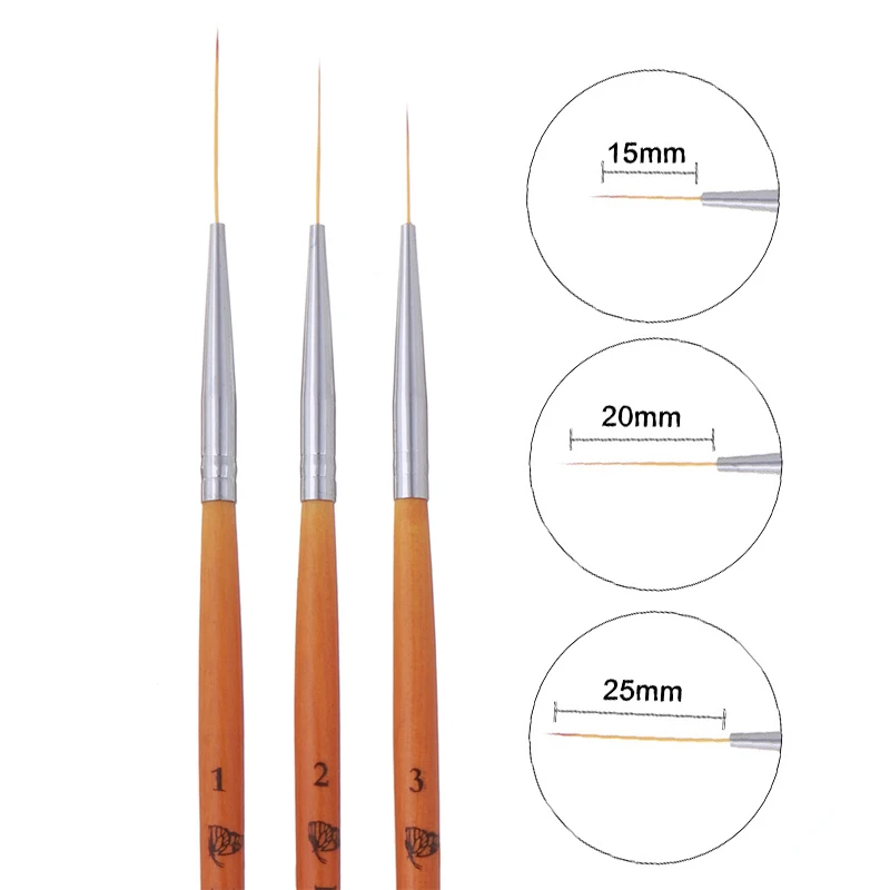 3 шт., кисти для дизайна ногтей, 152025 мм