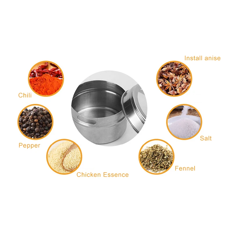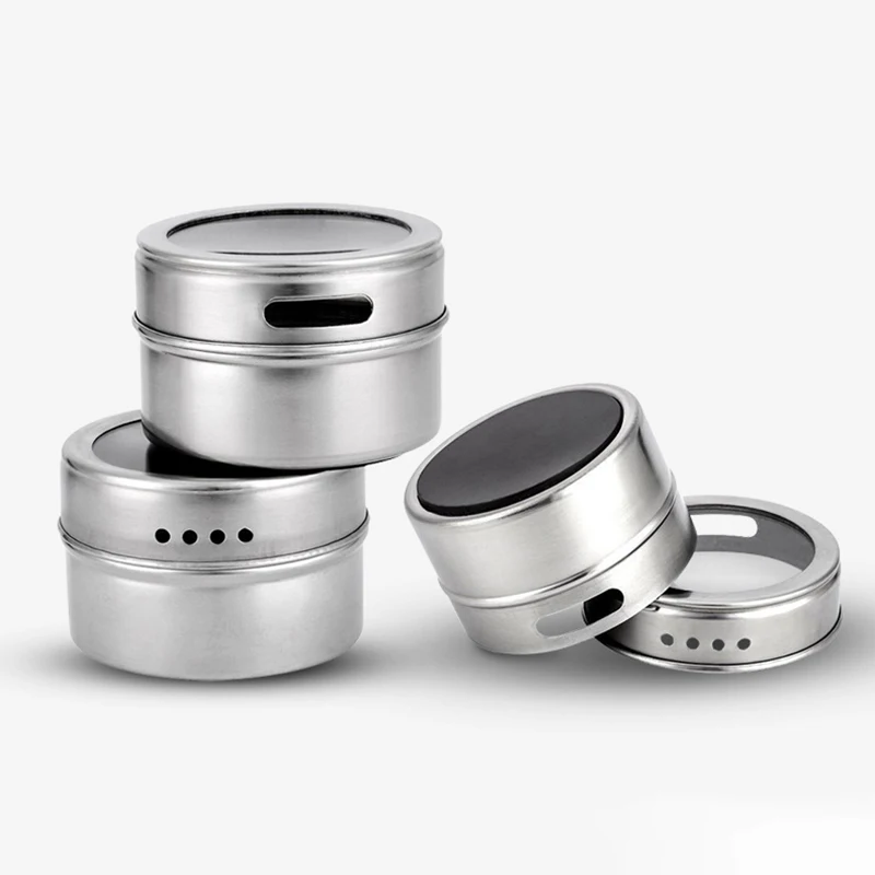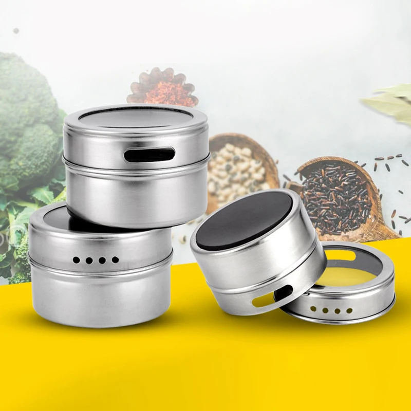 Новинка 2021, высококачественные Магнитные Банки для специй, портативные банки для специй из нержавеющей стали, набор емкостей для хранения женских специй, 6 шт.