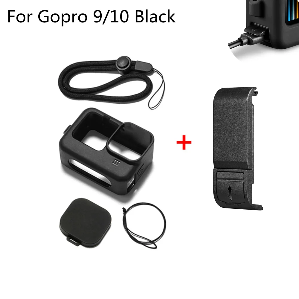 Мягкий силиконовый чехол для GoPro Hero 10 9 с боковой крышкой батарейного отсека Съемная зарядная крышка типа C для камеры Go Pro Hero 9