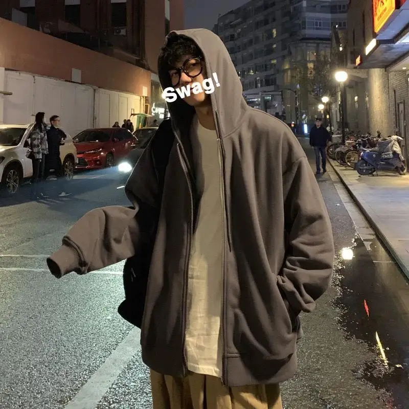 Мужская флисовая толстовка на молнии, с капюшоном, в стиле хип-хоп