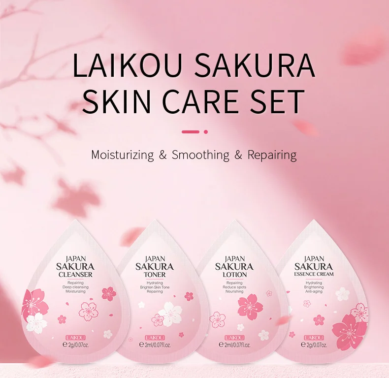 LAIKOU 4 шт. набор для ухода за кожей Сакура очищающее средство тонер лосьон крем глубокое очищение увлажняющее масло контроль портативный комплект дорожный костюм