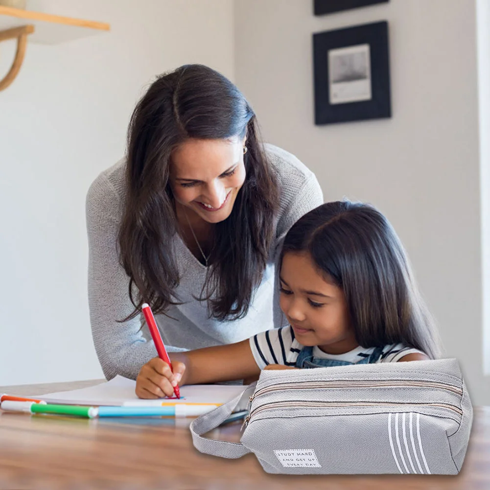Портативный большой емкости пеналы двойные канцелярские принадлежности на молнии ткань Оксфорд ручка коробка для мальчиков и девочек Студенческая сумка