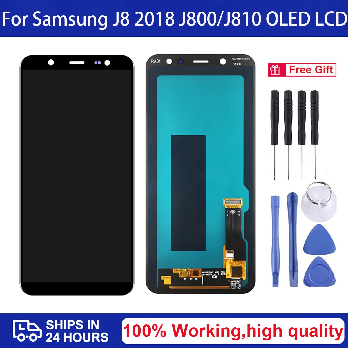 Дисплей AMOLED j810 6,0 дюйма для Samsung J8 2018 J800 SM-J800F J810 J810FN J810F j800, ЖК-дисплей с сенсорным экраном и дигитайзером в сборе