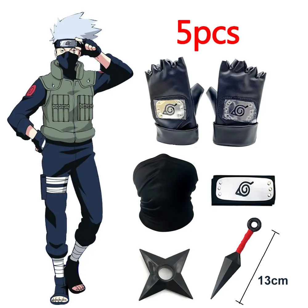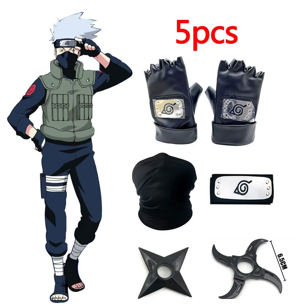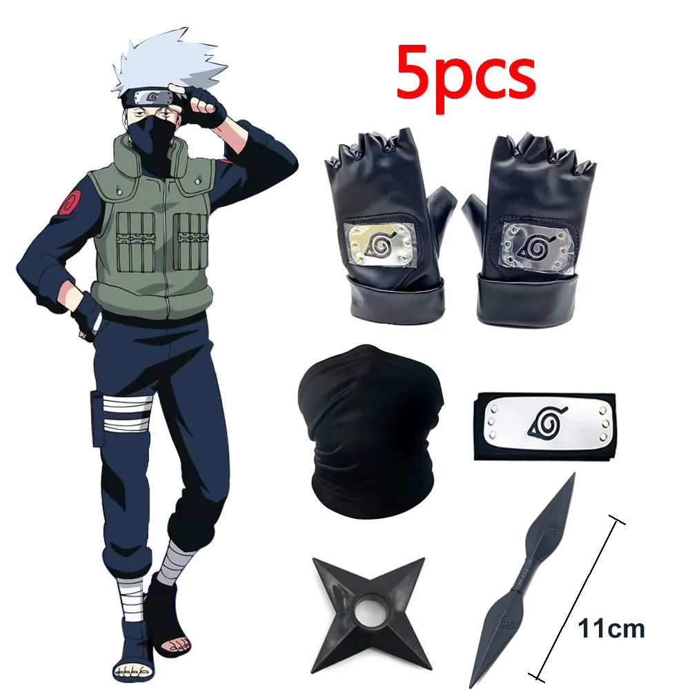 Набор аксессуаров для косплея аниме Наруто, головные повязки Какаси и кунаи, маска, варежки, экшн-фигурки, детские игрушки, рождественский подарок, 5 шт.
