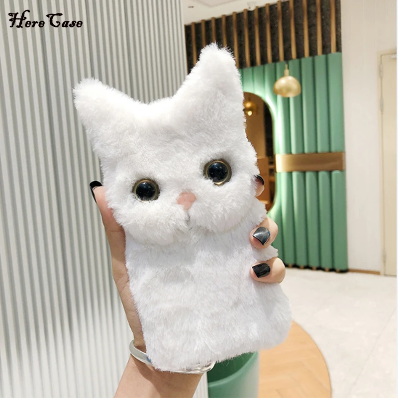 Зимний теплый плюшевый милый чехол для телефона с кошкой для IPhone...