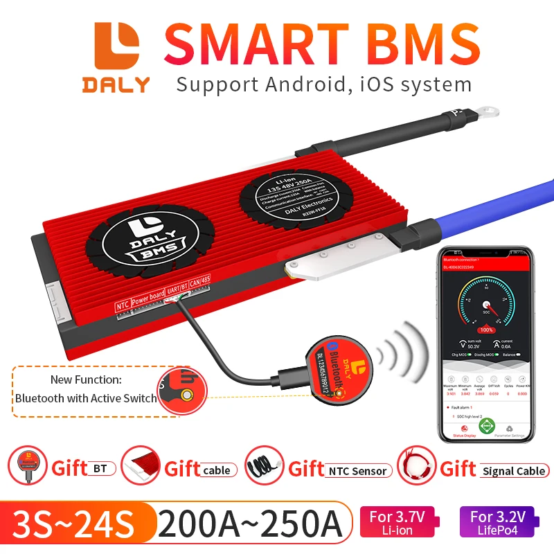 200A 250A 18650 BMS 4S 12V liFepo4 24V 36V 48V 60V 72V аккумулятор BT и может работать на солнечной энергии