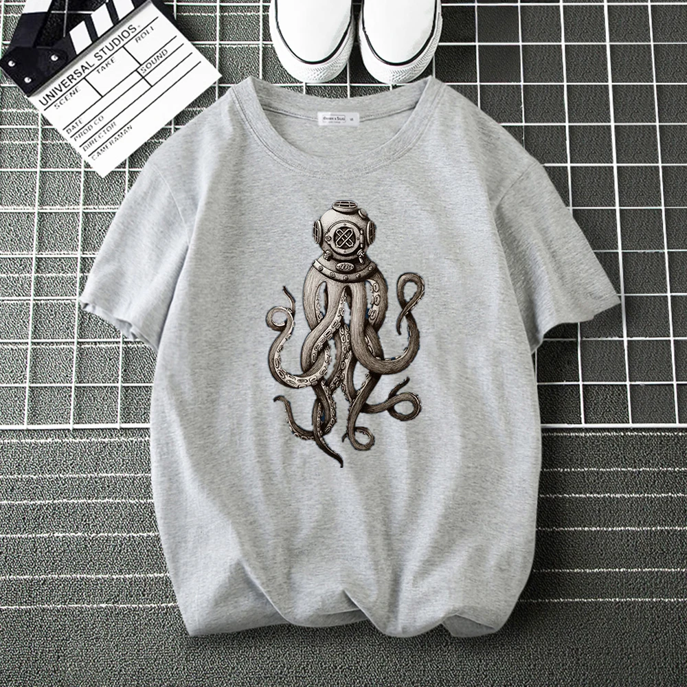 Футболка в стиле ретро для мужчин и женщин, Необычные повседневные топы с принтом акваланга, дайвера, осьминога, летняя брендовая одежда в стиле Харадзюку