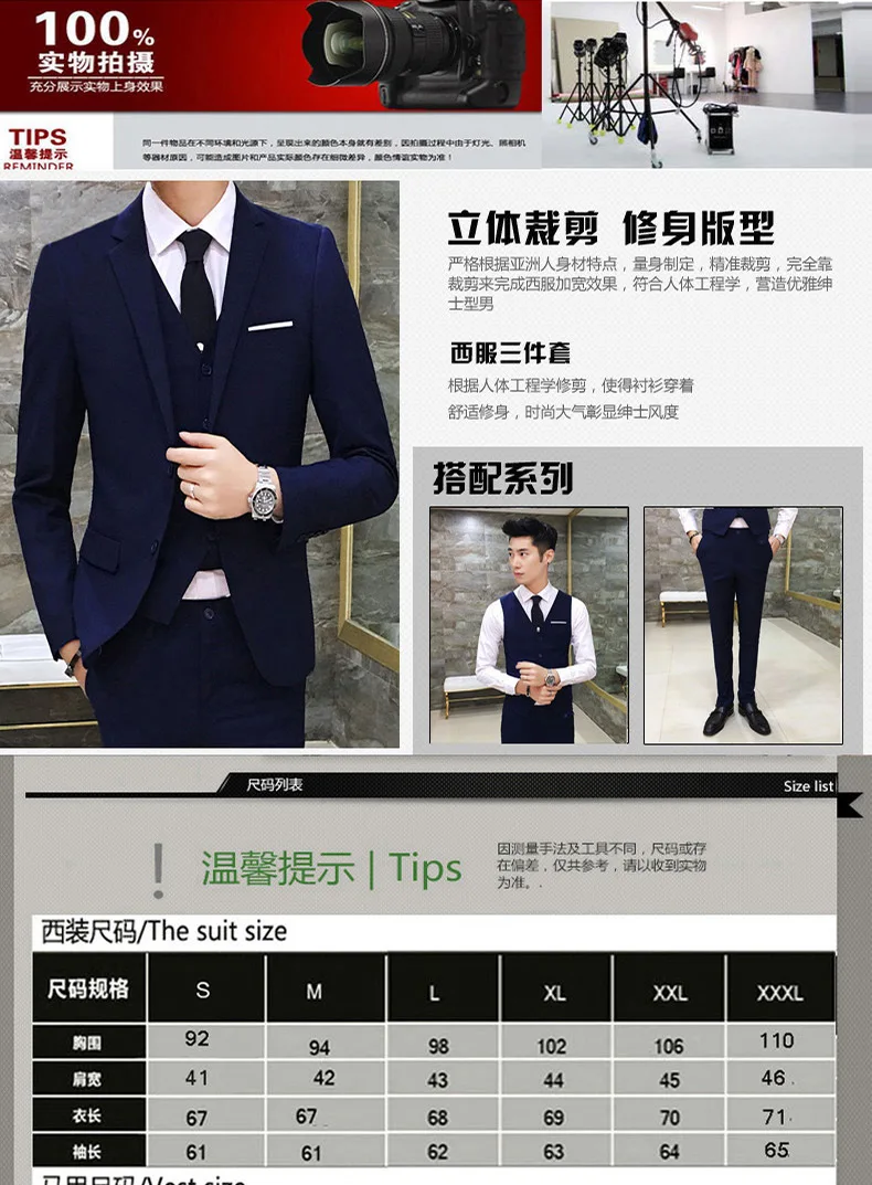 Роскошный мужской костюм, официальный костюм, блейзер + жилет + брюки, комплекты большого размера для мужчин, Свадебный и офисный деловой костюм, женский костюм, размеры 3 шт.компл.
