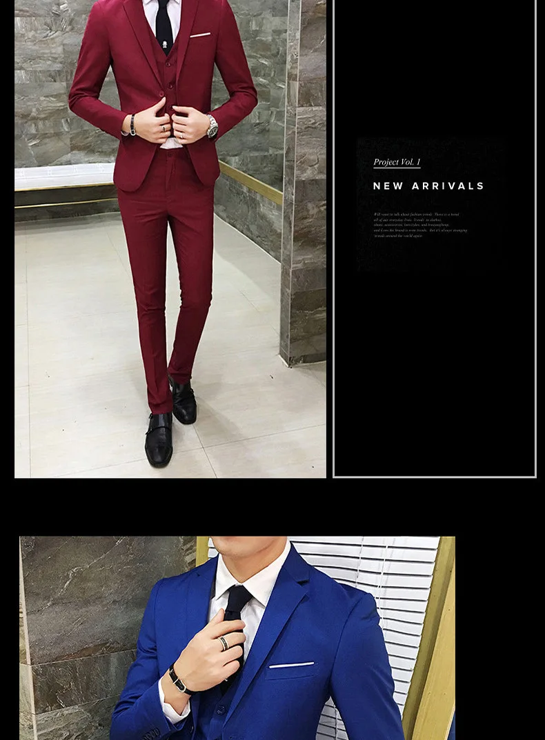 Мужской костюм из трех предметов, официальный костюм, жилет, Блейзе...