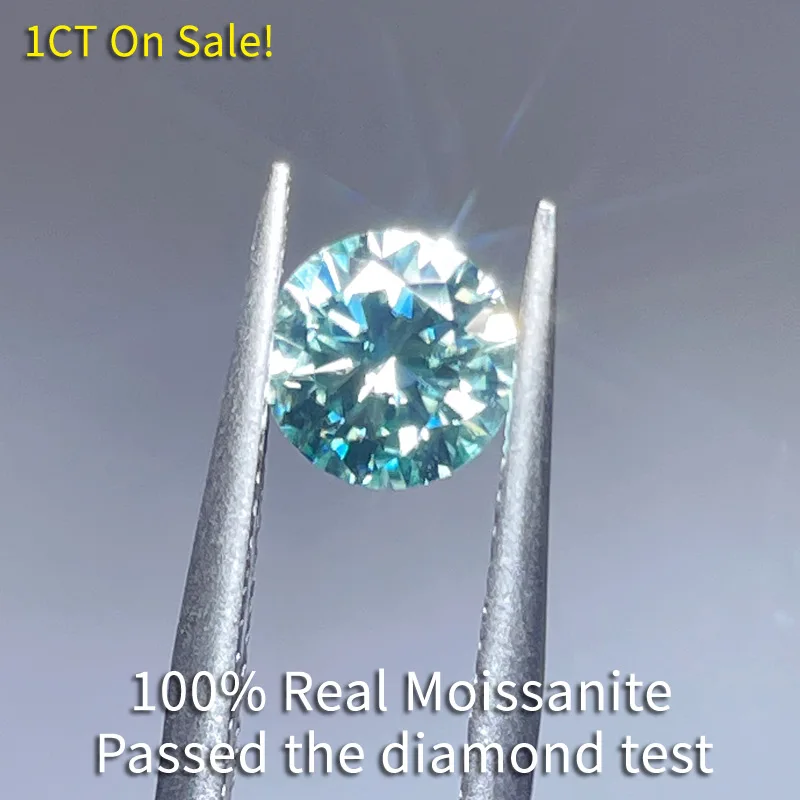 Большая распродажа, искусственный камень, 1 карат, 6,5 мм, сине-зеленый, свободные лабораторные бриллианты, цвет D VVS 3EX, Муассанит для колец