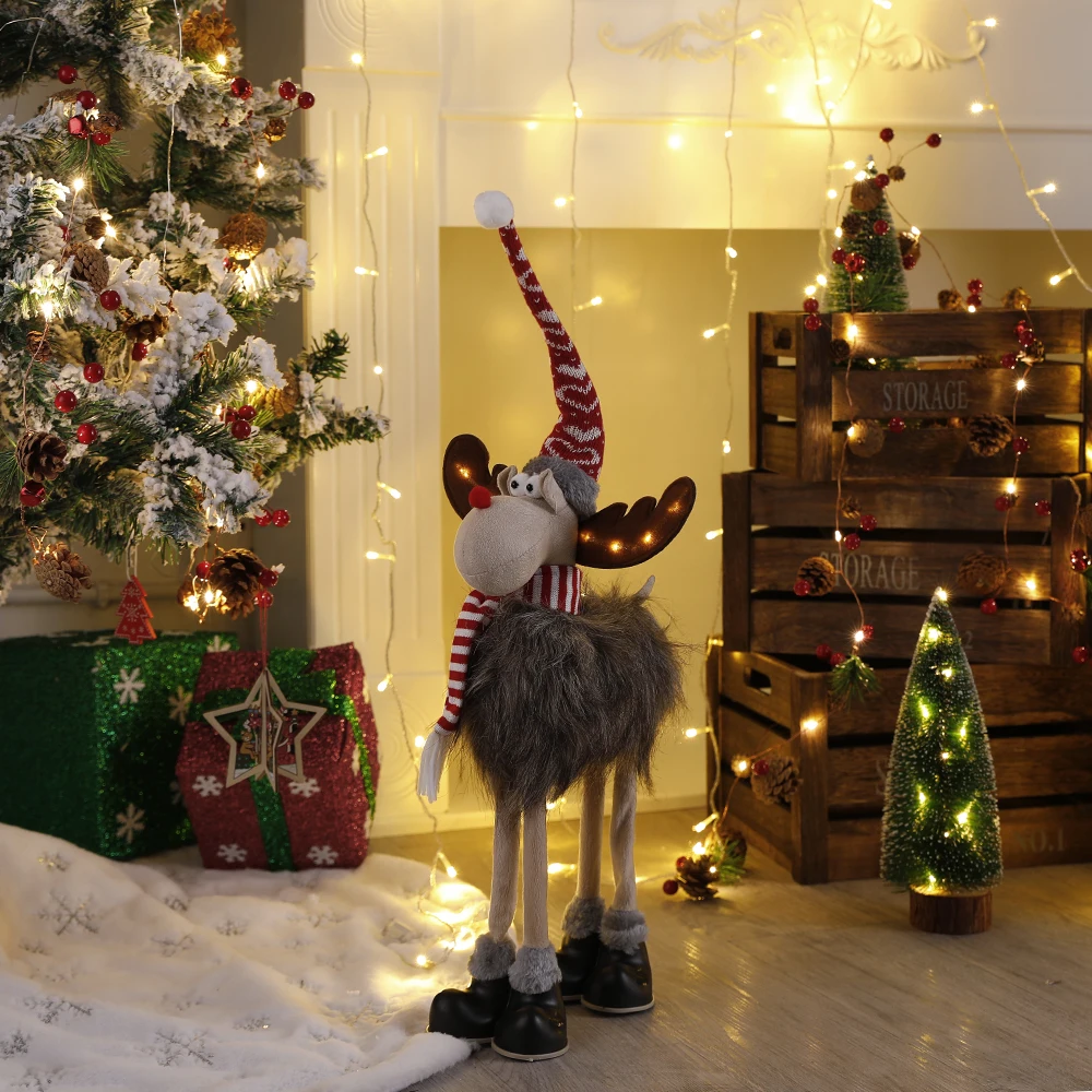 Рождественские украшения, куклы, плюшевые, стоящие, лося, олень, олень, куклы с светодиодный подсветкой, светящиеся рождественские украшения, детские новогодние подарки