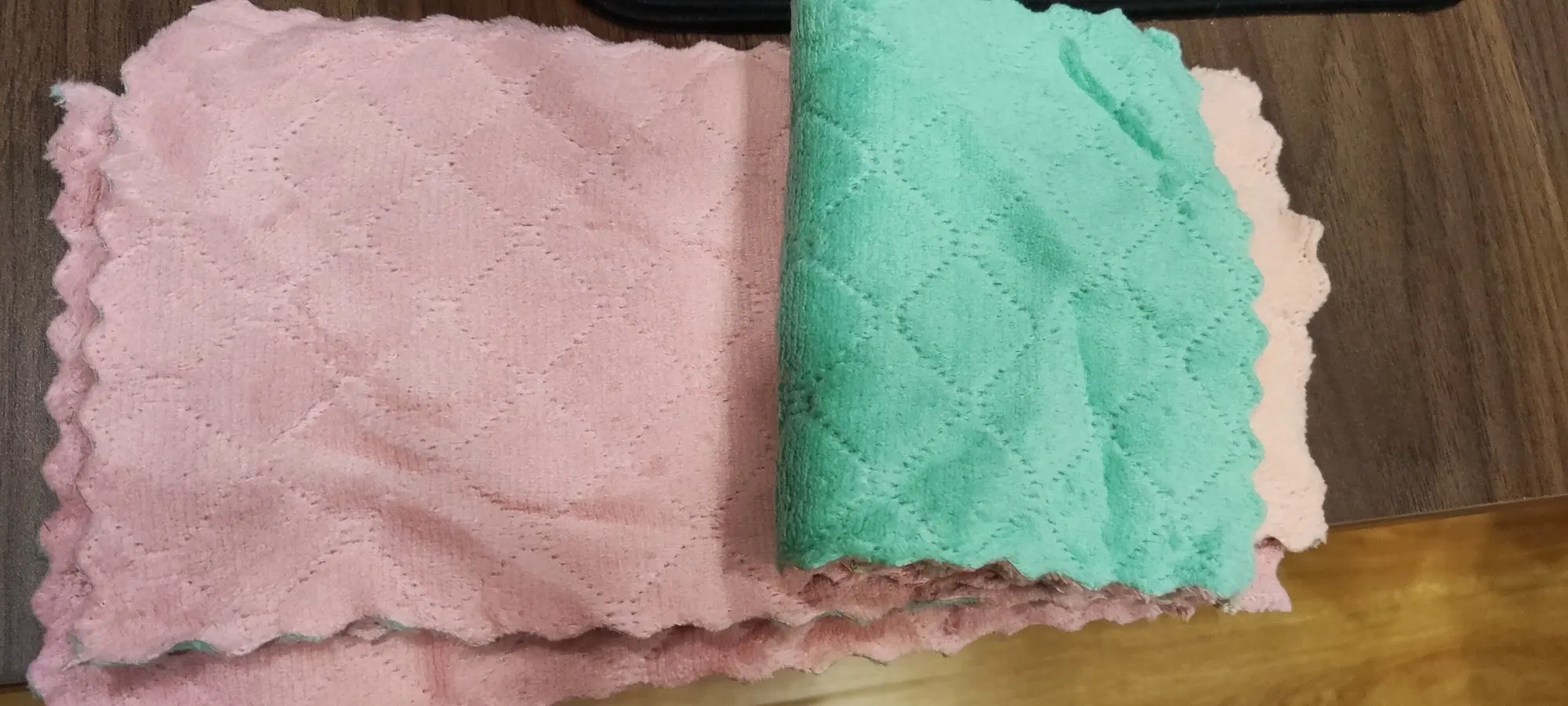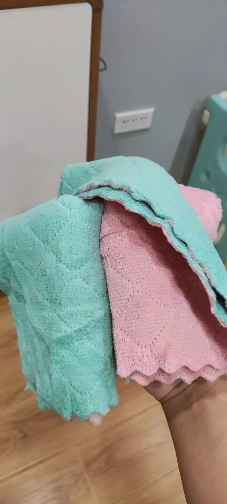 Тряпичный материал очень хороший и толстый, и его можно легко вытереть. Также очень хорошо подходит для мытья посуды. Он очень чистый. Его также можно очистить, если он приклеен к нижней части горшка. Его также можно использовать для протирания стола. Нет водяных знаков после протирания, очень хорошо использовать, толщина также очень хорошая, она очень подходит для протирания стекла стола