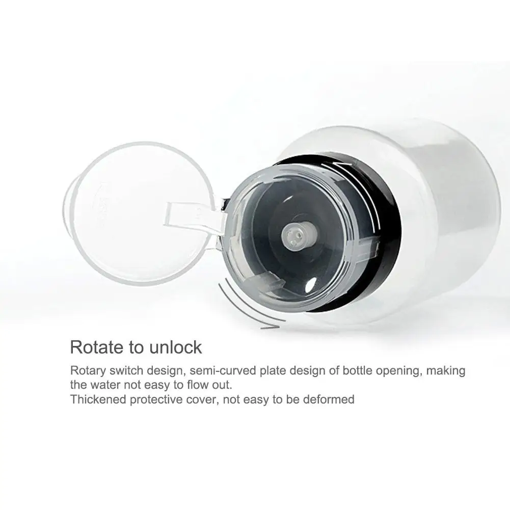 Бутылка-диспенсер пустая с замком для снятия лака для ногтей и маки...