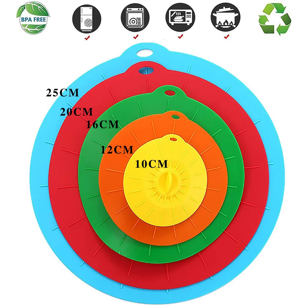 Многофункциональность-Всего 5 размеров-10 см, 12 см, 16 см, 20 см, 25 см. Размеры могут отличаться, и они подойдут практически ко всему! Такие как кастрюля, сковорода, блюдо, тарелка, миски, контейнер, кофейная чашка кувшин, банка и многое другое. Отлично подходит для приготовления пищи и выпечки. Также Perf