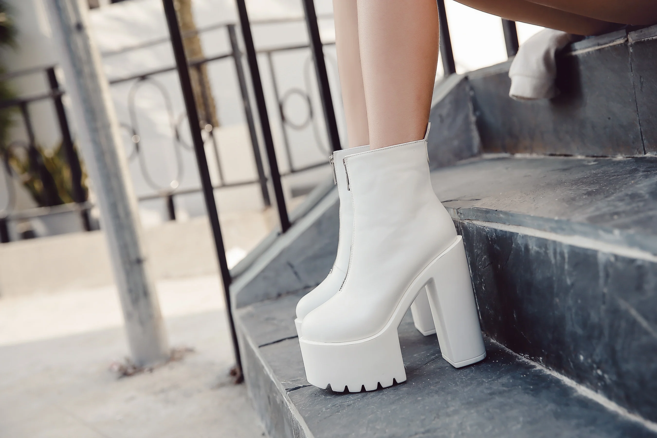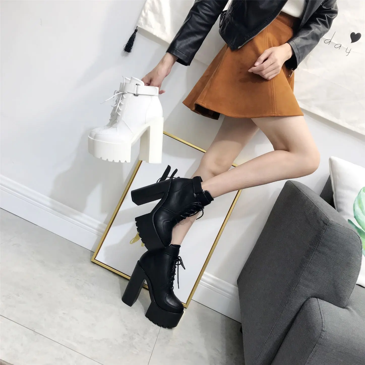 Женские ботинки с круглым носком, водонепроницаемые Нескользящие ботильоны на платформе и толстом каблуке, обувь для ночного клуба, для зимы, 2022