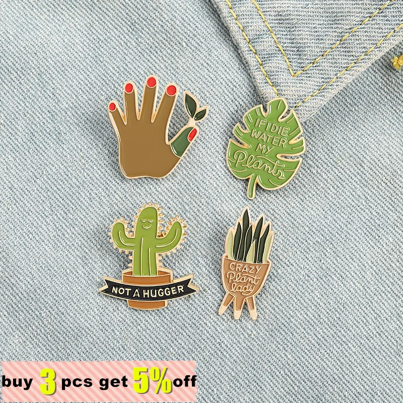 Эмалированные булавки Crazy Plant Lady, броши с изображением кактус...