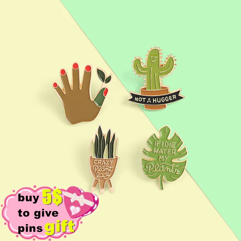 CRAZY PEAMT леди не HUGGER идея эмали штырь кактуса полива Hug Брош...