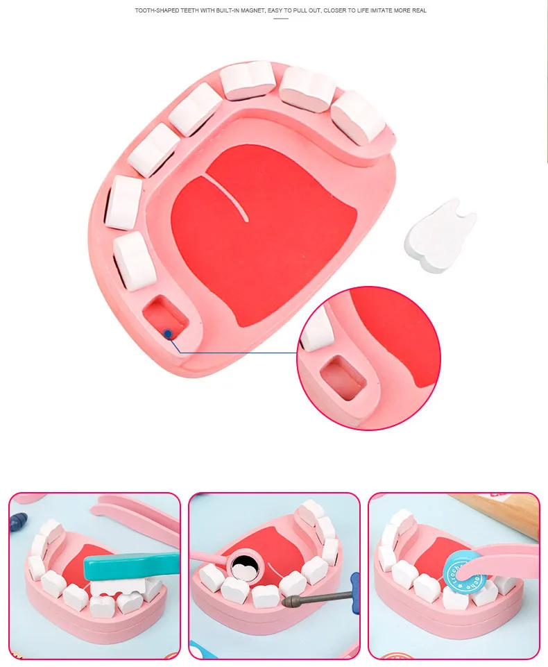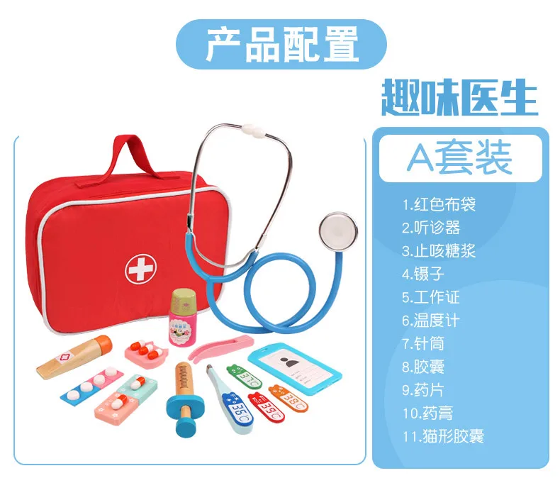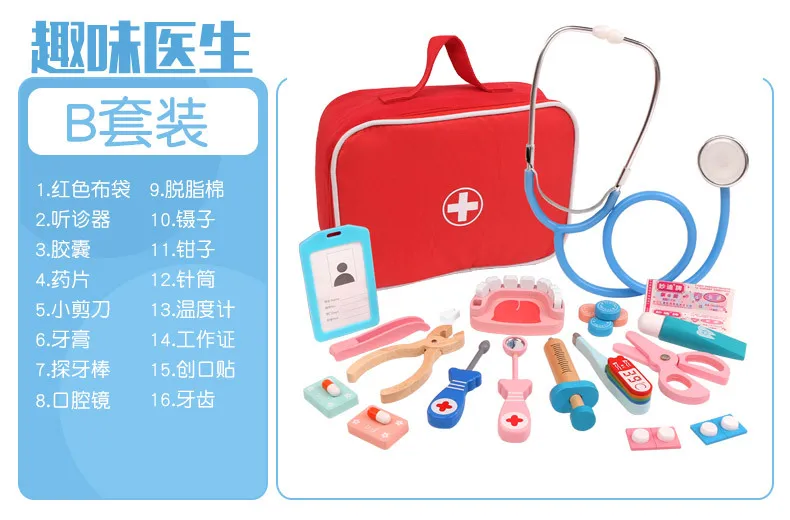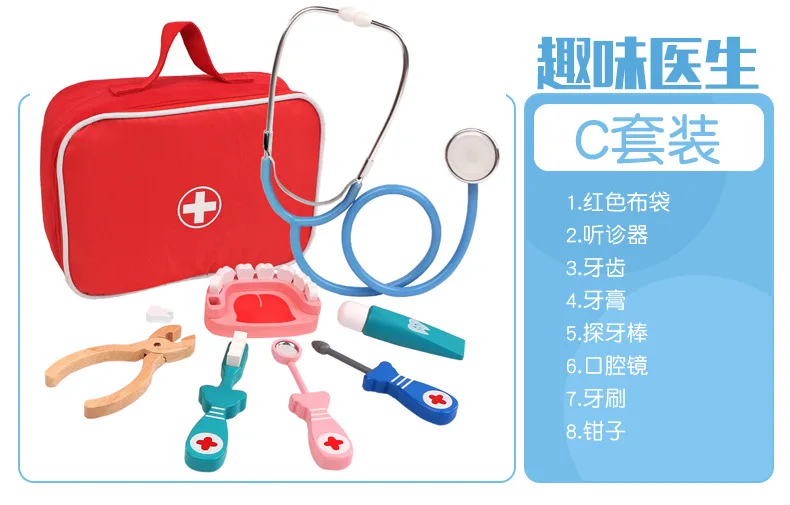 Набор докторских игрушек для детей, Детский деревянный комплект для ролевых игр для девочек и мальчиков, детский красный медицинский стоматологический бокс, тканевые сумки