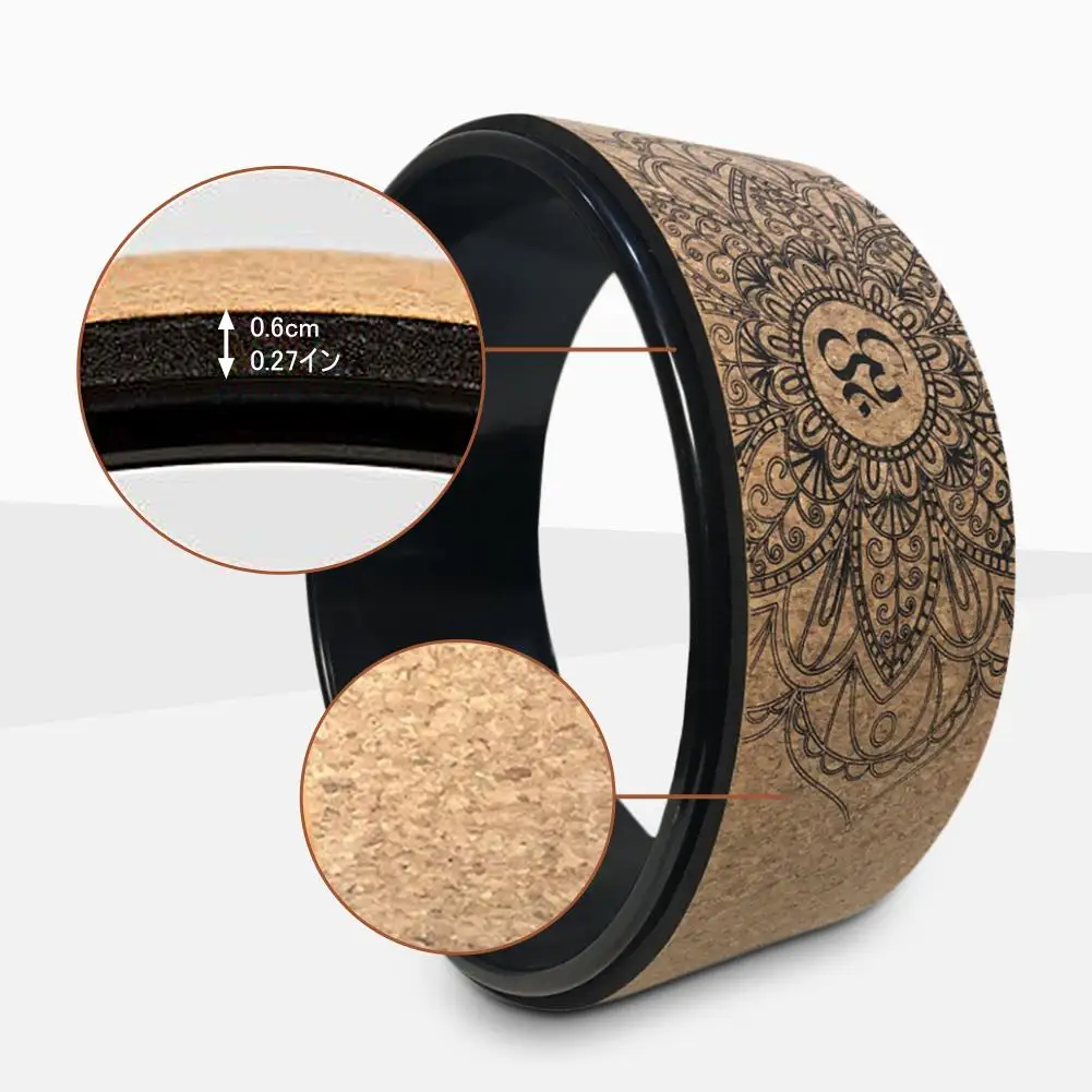 Колесо для йоги с узором мандала, Натуральная пробка, Вспомогательное колесо для йоги, массажное колесо, изгиб спины, артефакт, Пилатес, круг для йоги